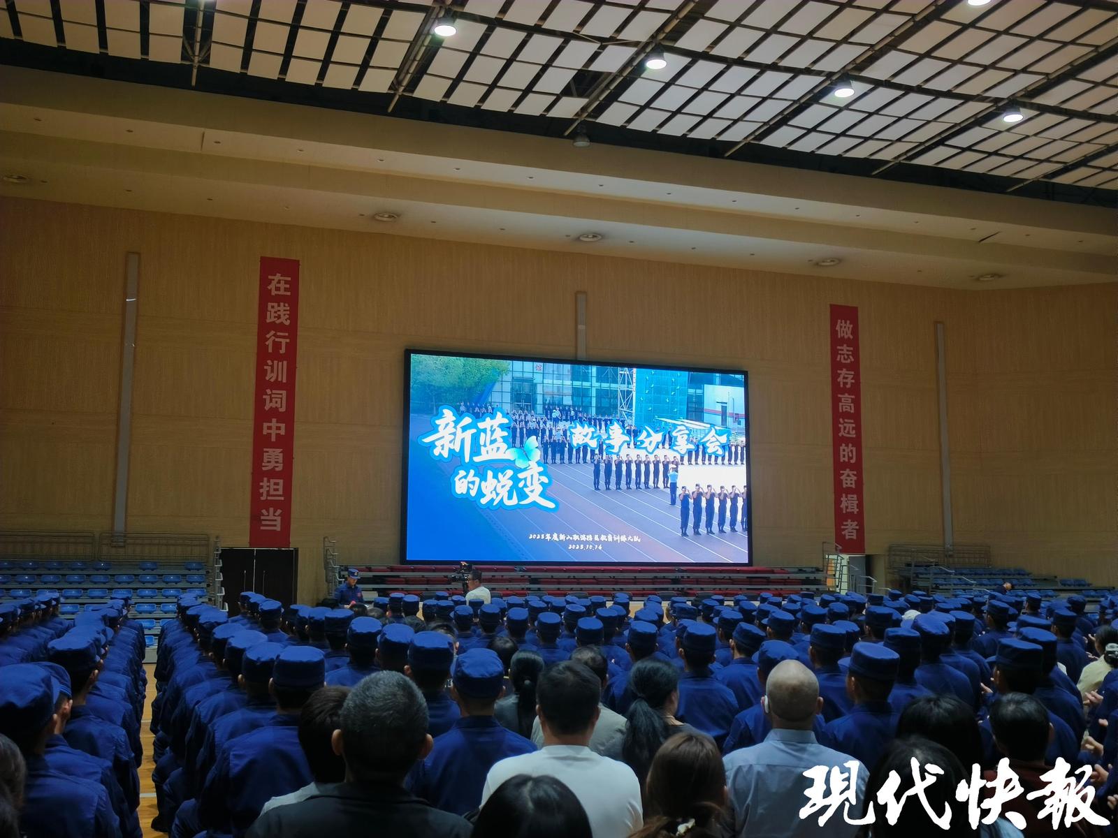 当天活动现场,新训消防员与家长齐聚一堂,多名新训消防员上台分享了自己的故事。来自南通的邹鹏臣22岁,毕业于江苏师范大学,大学里他是一名怀揣摇滚梦的人,会弹吉他,还和一群志同道合的朋友组建了乐队。从一个乐队的“文艺青年”到成为一名国家新训消防员,他说这都源于童年里埋在心里的一颗种子。因为家人中,就有人曾从事消防救援工作。大学毕业后,站在人生的十字路口,他想努力去做更有分量的事情,直到看见国家综合性消防救援队伍的招募信息,童年那个“逆行者”的形象,和乐队里“为同一目标奋斗”的感觉瞬间重合,他毅然作出了选择。从最初的憧憬到入职后面对现实的残酷,训练艰苦、内务要求严格,但看似枯燥的磨砺中,邹鹏臣不断在成长。从入职到一个多月后再次见到家人,邹鹏臣的妈妈说,“短短一个多月没见,就觉得儿子已经从男孩蜕变成了男人,今天正好又是我的生日,看到他站在台上分享故事,心里感动又骄傲。”