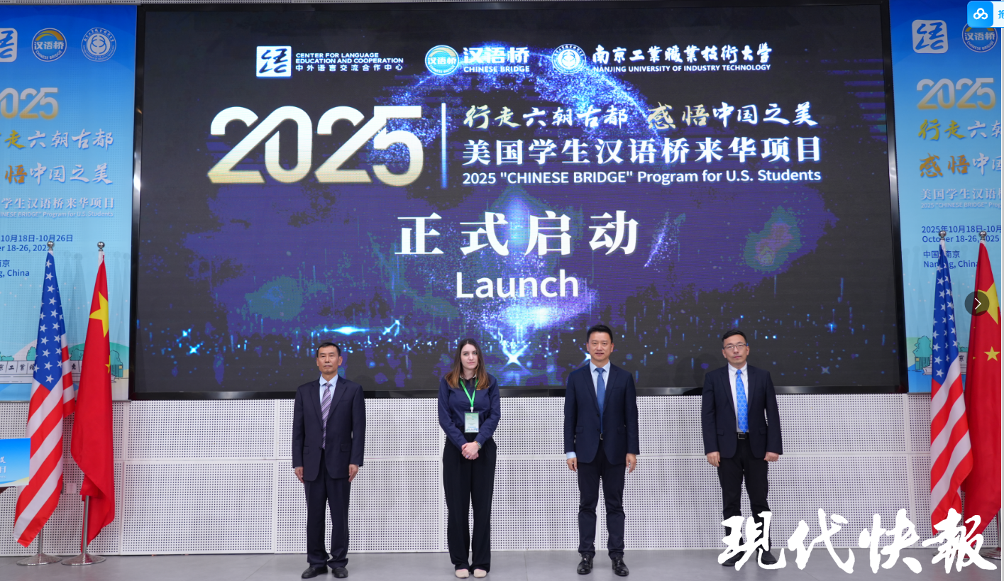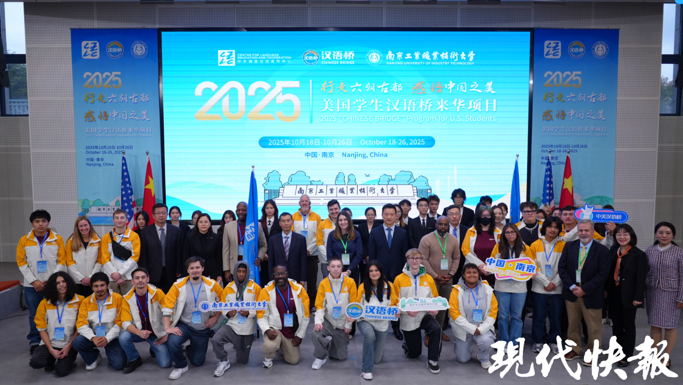 10月20日,在教育部中外语言交流合作中心、江苏省教育厅、江苏省人民政府外事办公室指导下,南京工业职业技术大学主办的“2025年美国学生汉语桥来华项目”在学校仙林校区顺利开营。本次研习营以“行走六朝古都,感悟中国之美”为主题,邀请中美两国职业院校50名师生参加。