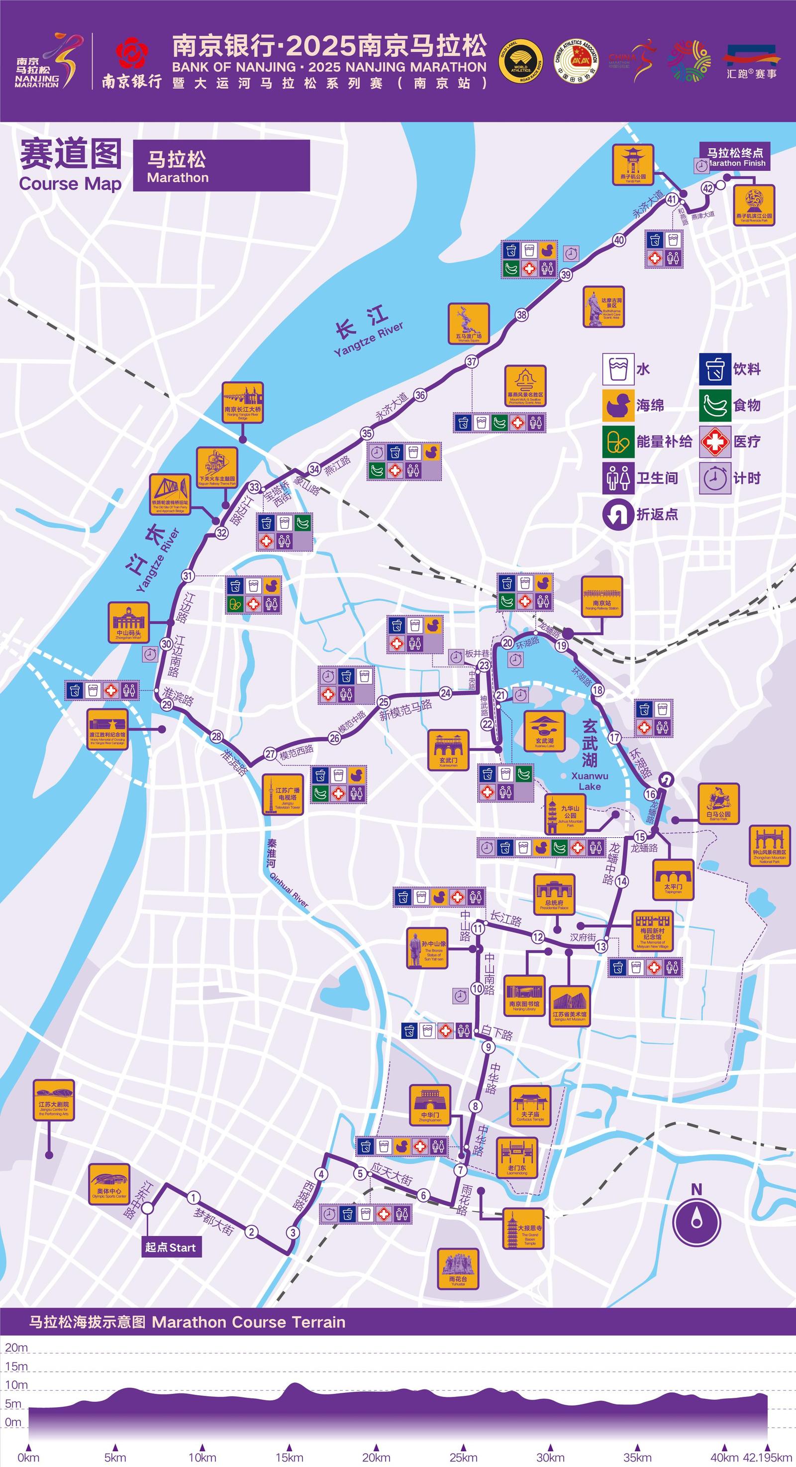 2025年南京马拉松将于11月16日(星期日)上午7:30在南京市举行,2.4万名参赛选手将从奥体中心东门开跑,途经中华门、夫子庙、新街口、玄武湖、中山码头等点位,最终在燕子矶滨江公园抵达终点。与去年相比,原凤台南路赛段被西城路(梦都大街-应天大街)所替代。