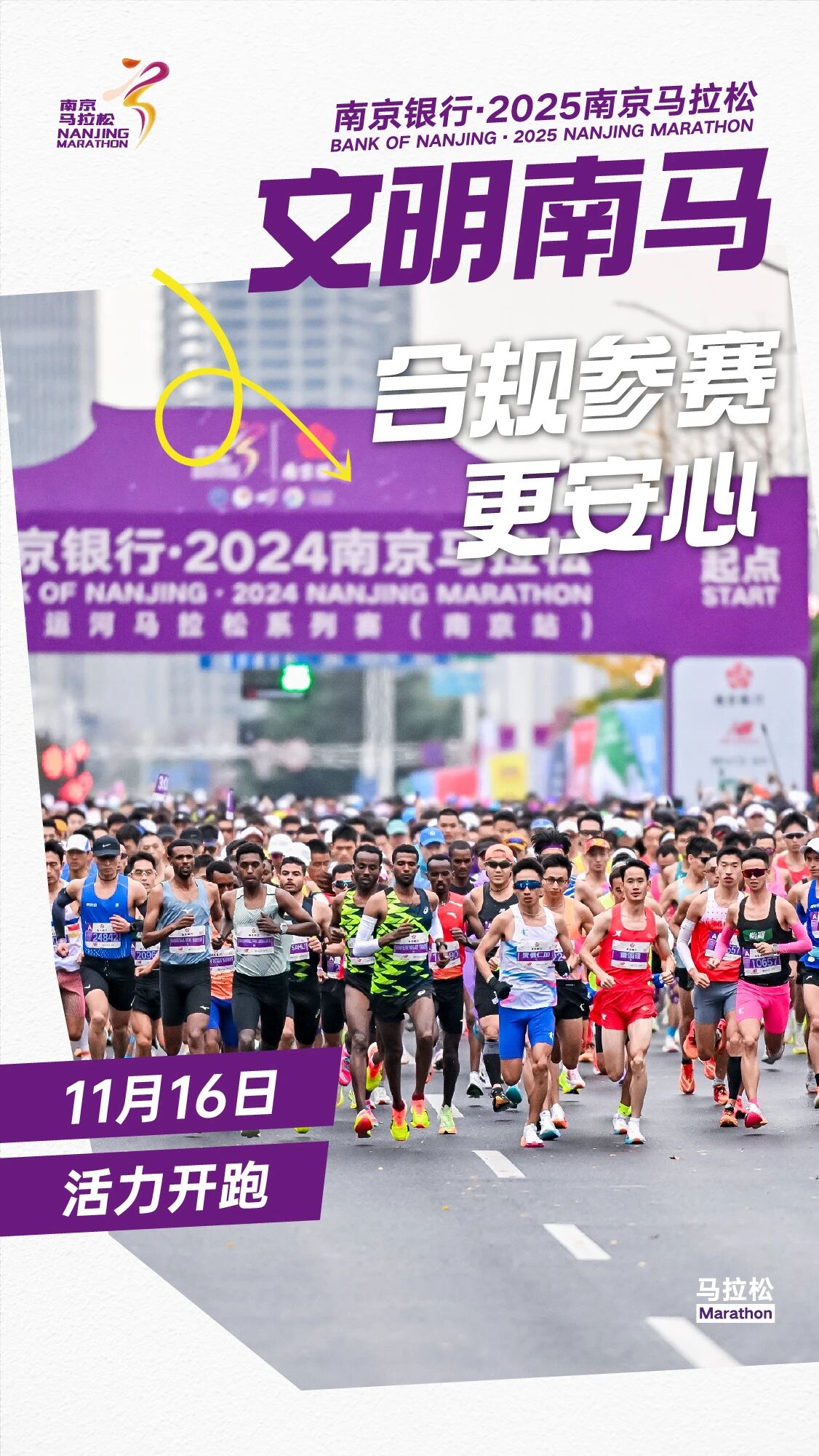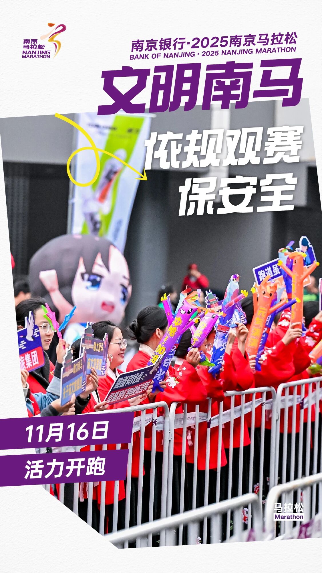 组委会呼吁全体参与者共同守护“文明南马”品牌,相约11月16日的金陵城,以奔跑致敬热爱,以文明点亮赛事,共同书写2025南京马拉松的精彩篇章。