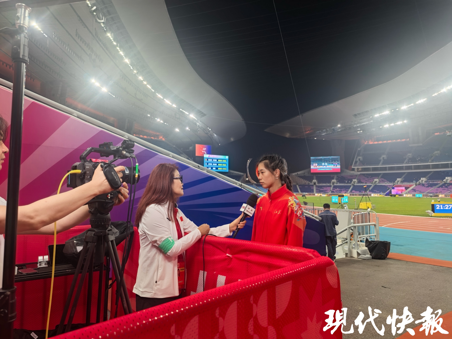现代快报讯(记者 王卫)11月16日,第十五届全运会田径比赛在广东省奥体中心体育场举行,江苏运动员周慧以14.06米的成绩获得女子三级跳远冠军。