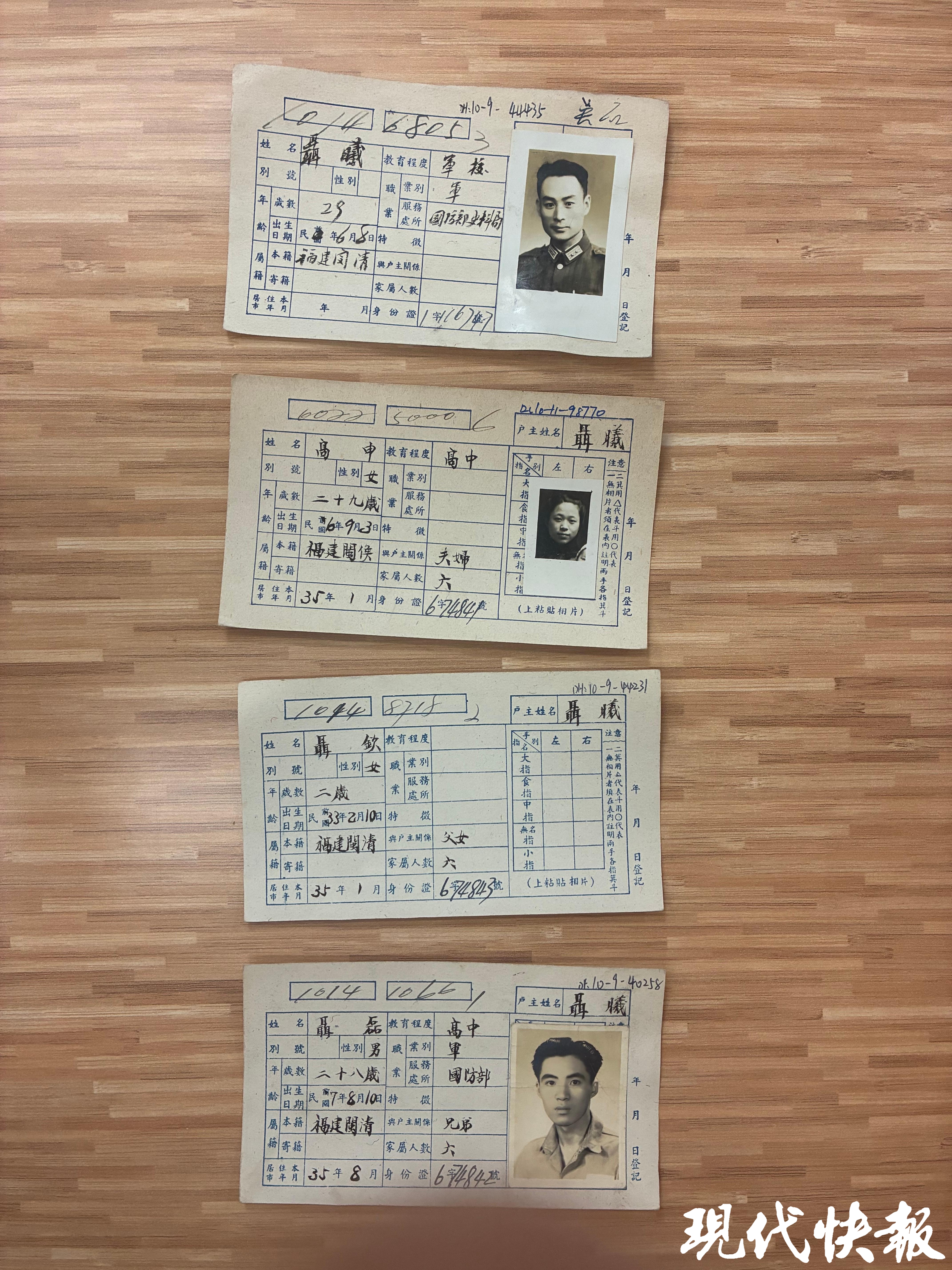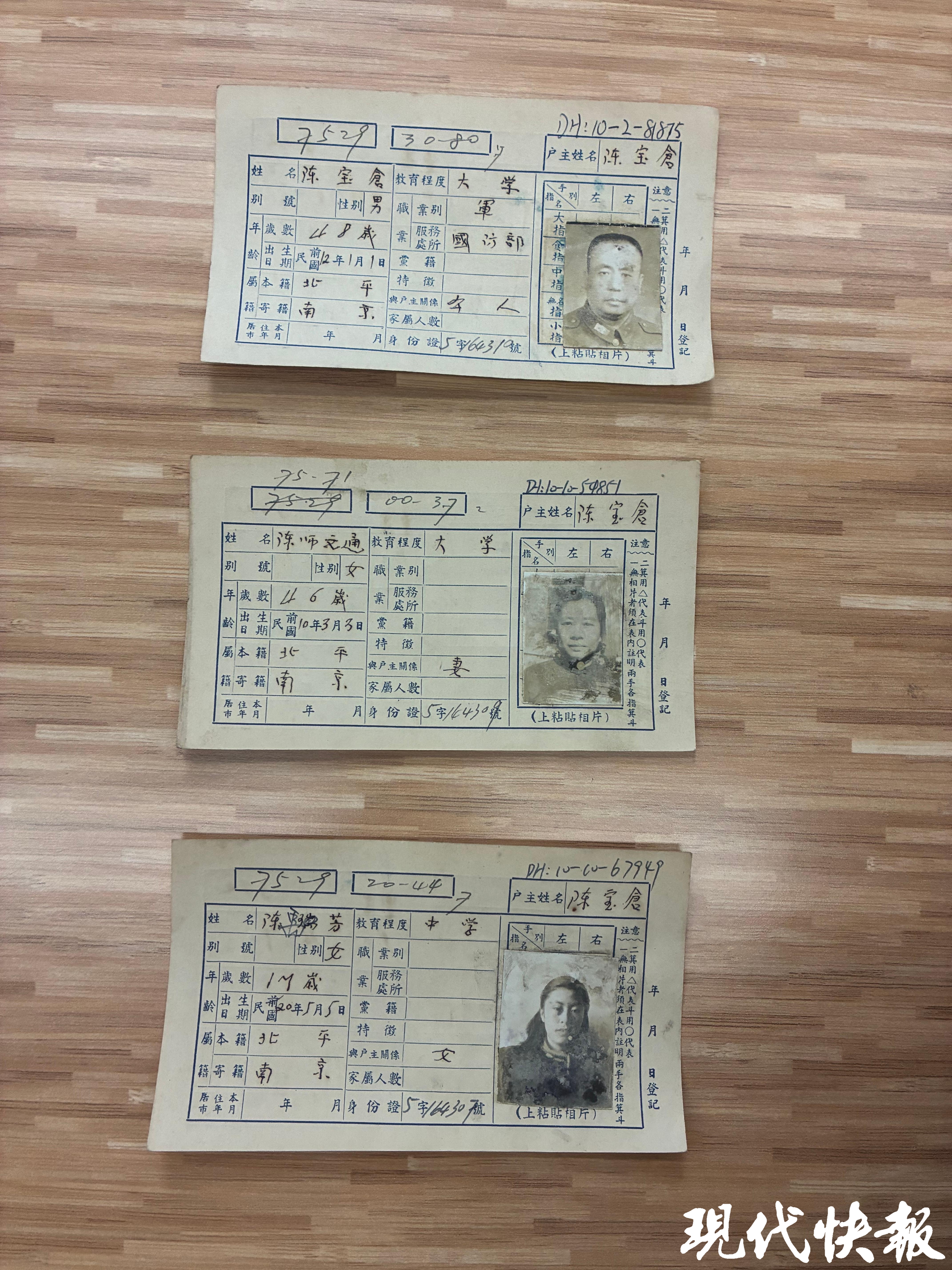 聂曦烈士一家在南京的户籍档案中,不仅有户主聂曦本人的户籍卡,还有他的妻子高申、当时两岁的女儿聂钦,以及他的弟弟聂磊。除了年幼的聂钦之外,每张户籍卡上都有一张证件照。向南京市档案馆提出查档的,是聂磊的外孙女张敏。外公聂磊和外婆黄萍在户籍卡上年轻时的照片,她也是第一次见到。