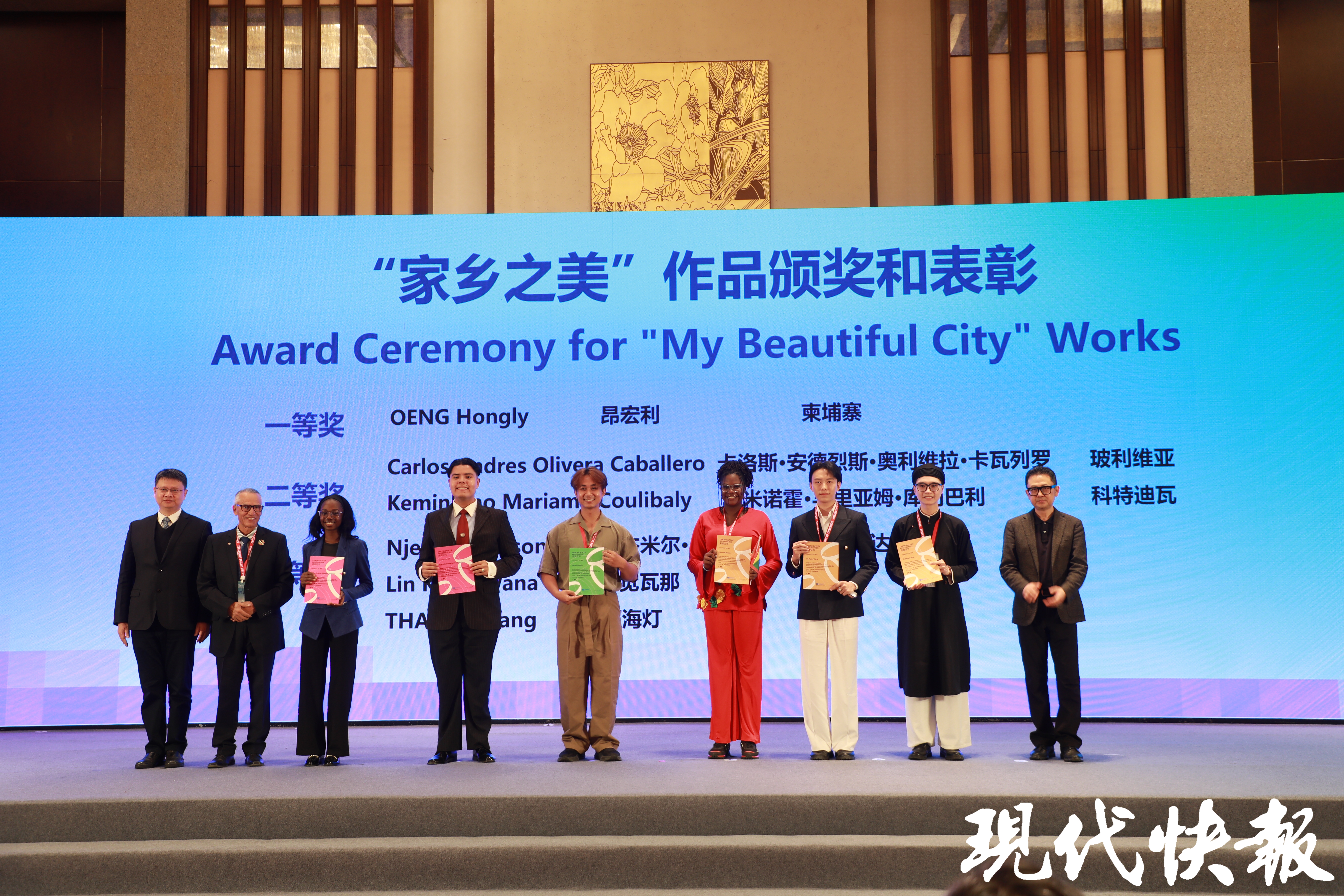 开幕式上,“家乡之美”全球青年创意作品征集颁奖仪式同步举行。作为南京发起的品牌活动,该活动2025年以“来自家乡的民俗故事”为主题,鼓励青年通过视频、视觉艺术、文字等形式挖掘方言、童谣、民间传说中的文学元素,唤起对文化根脉的情感共鸣。2025年该活动共收到来自29个国家的青年的作品,展现了青年创作者对传统文化的创新表达。