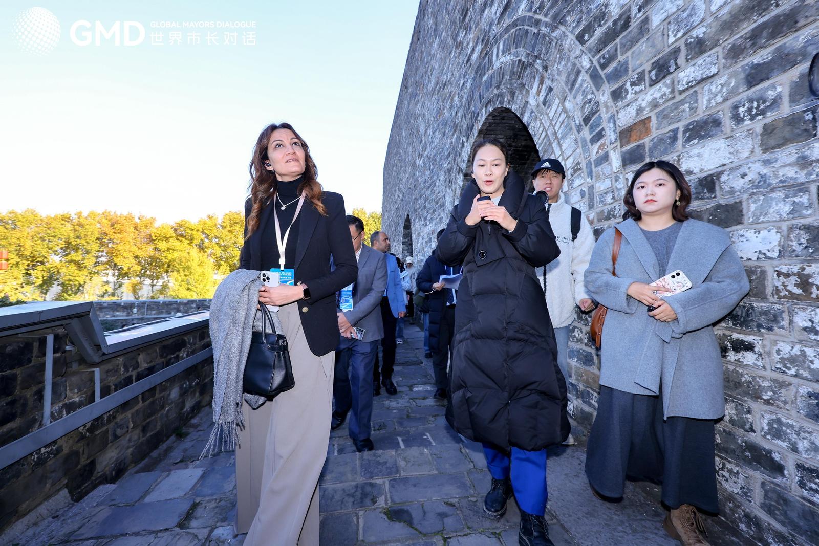 现代快报讯(记者 胡玉梅 卢河燕 李楠/文 钱念秋/摄 史童歌/后期)城墙之南秦淮河水,浩浩汤汤;城墙之北六朝烟水,岁月静好。11月19日下午,2025“世界市长对话·南京”活动来到南京中华门。埃及吉萨省副省长亨德·穆罕默德·艾哈迈德·阿卜杜勒哈利姆,埃及外交事务委员会理事会成员、世界城地组织北非区域办公室主任穆罕默德·赫加吉等人,一起爬上中华门瓮城,感受秦淮风光。在南京城墙博物馆内,多国市长们调研讨论起“南京如何盘活文化遗产”的话题。