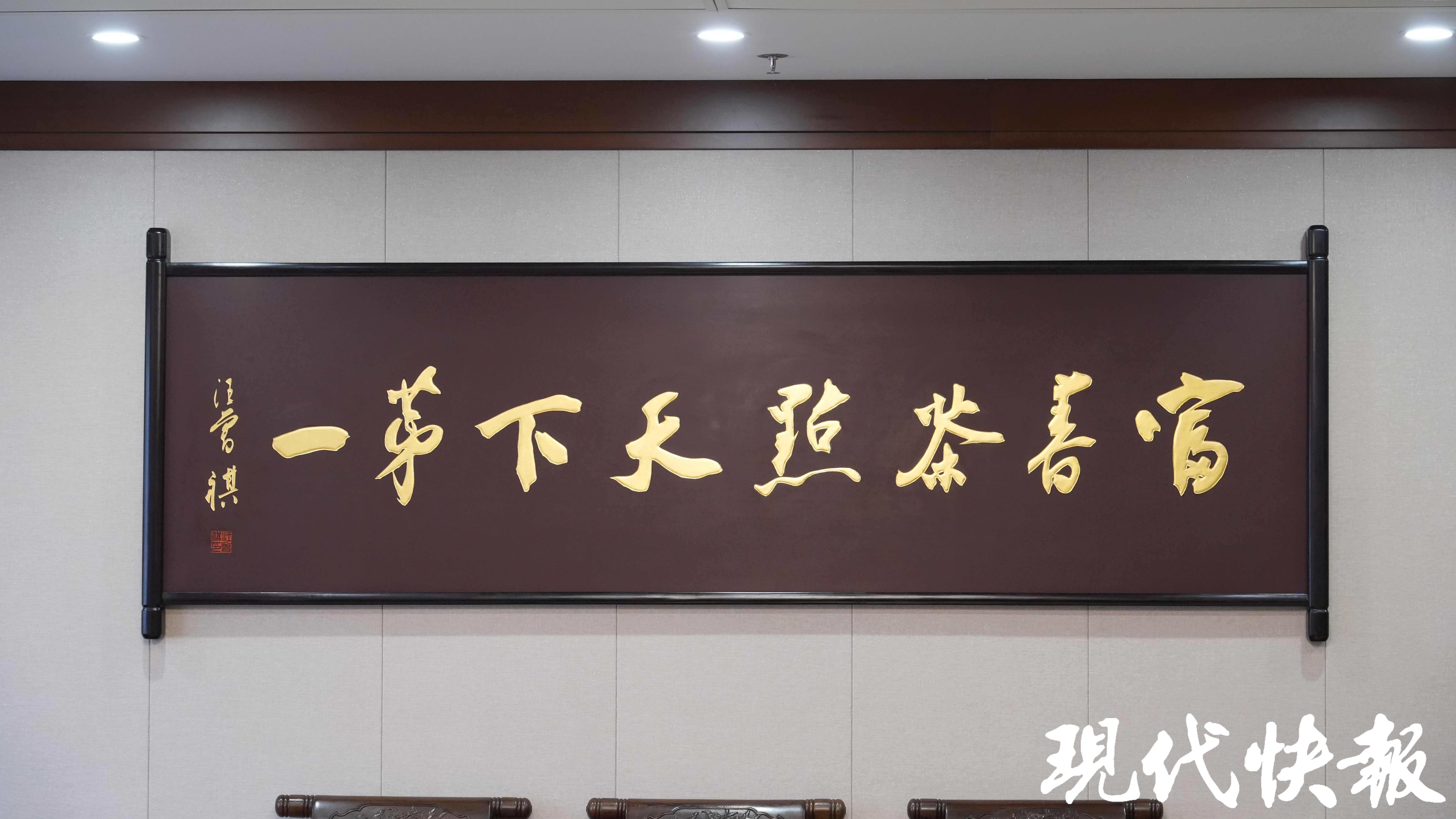 著名作家莫言在春雨中走进富春茶社, 一番细品之后, 题写 “两代名厨四季宴, 一江春水三省茶”, 将富春特色高度概括, 令人叫绝。