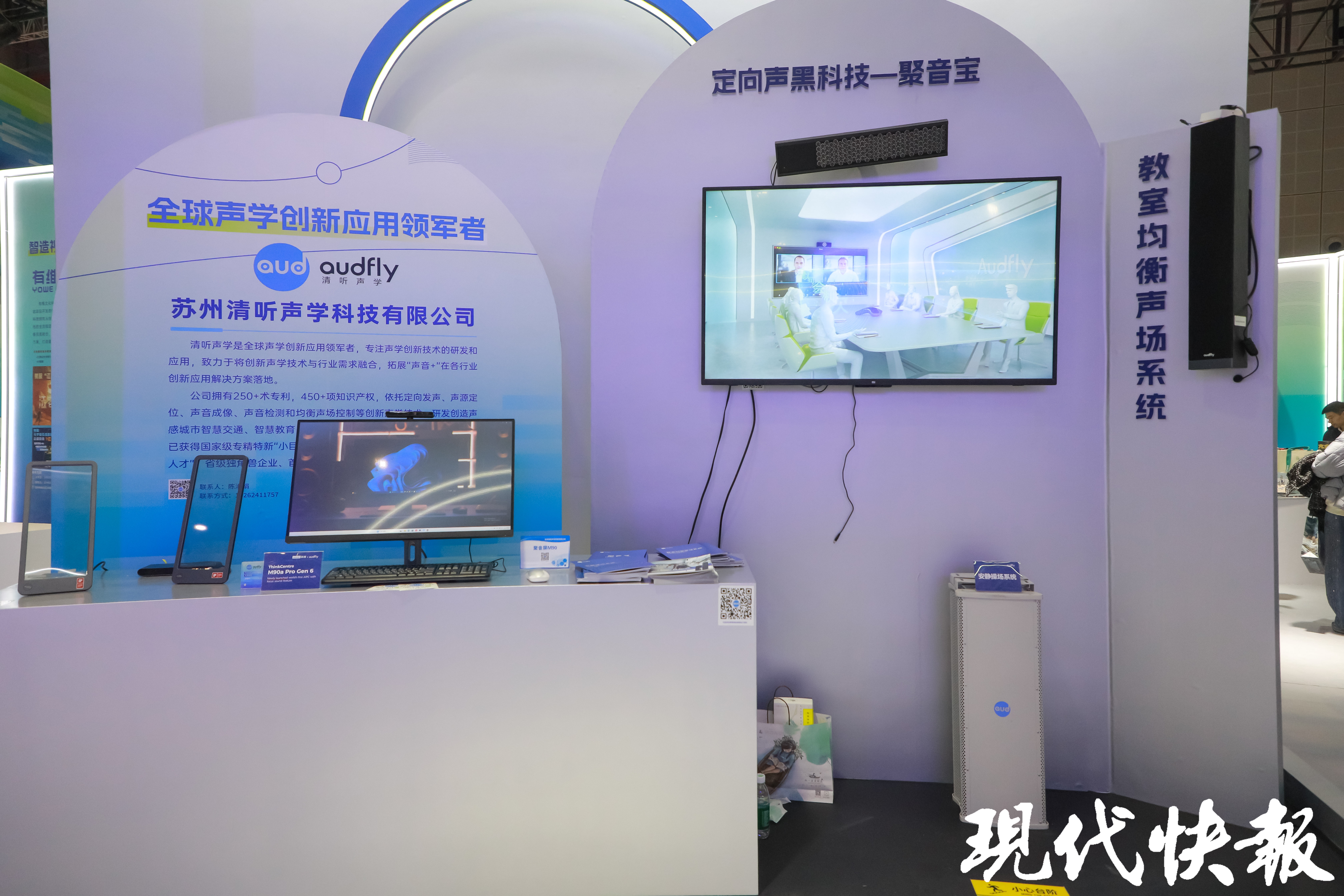 教室是学生们每天待得最多的地方,但前排和后排听到的讲课声差别很大,这有什么好的解决方式?江苏展区内,苏州清听声学科技有限公司带来了教室均衡声场系统,解决教室混响大、声场不均、影响授课质量和学生听力健康的问题。“我们还研发了安静操场系统,从源头降噪实现校园与居民区和谐共处。”现场工作人员介绍。