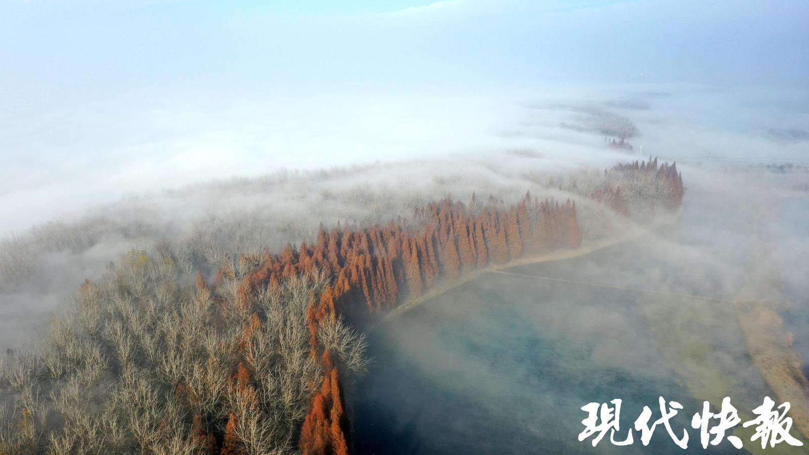 洪泽湖大堤平流雾 陈凯 摄