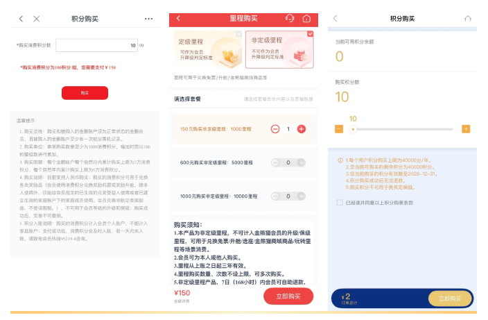 比如,调查发现,海南航空、厦门航空、四川航空3家航司开放了里程或积分付费购买服务。其中,海南航空消费积分单笔最低购买量为1000积分,售价150元,后续增加购买需以100积分的整倍累加;四川航空可用于选座的非定级里程,单笔最低购买量为1000里程,售价150元;厦门航空积分单笔最低购买量仅10积分,对应售价2元,可进行累加购买。