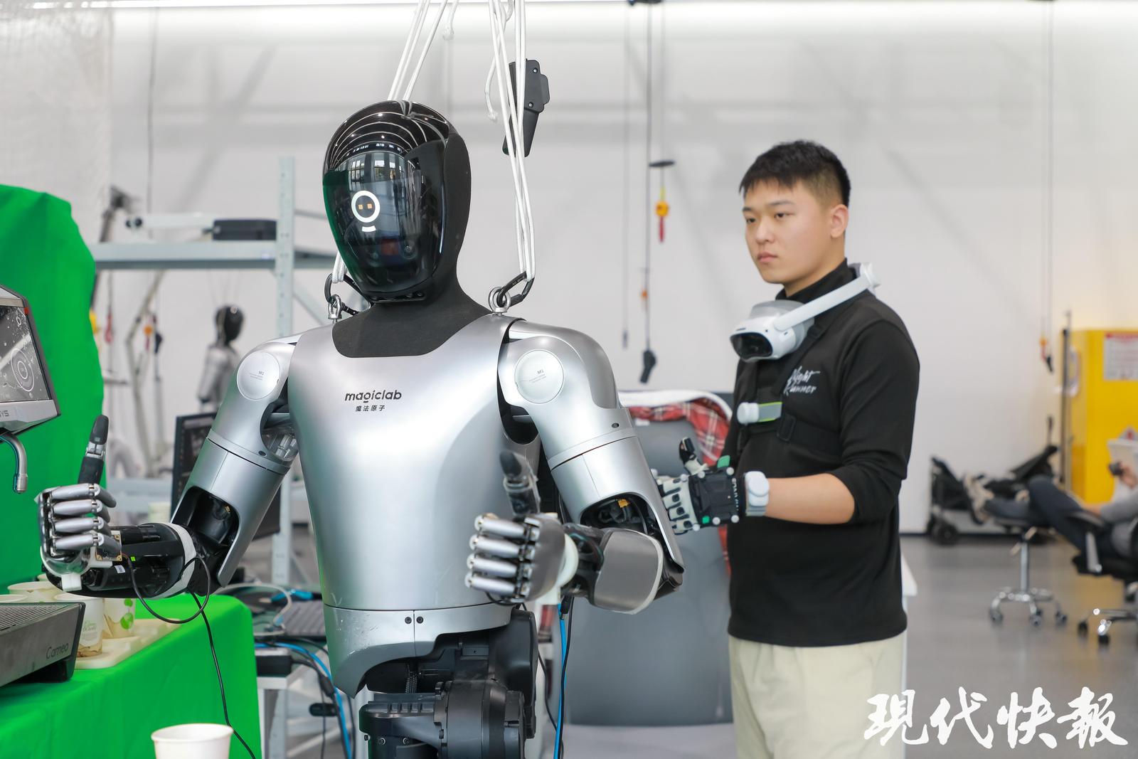 现代快报记者在现场观察到,综合创新中心内有许多年轻科研人员:他们指尖轻移,机械手如真人般精准抓取、灵活装配;他们输入代码指令,便开启了一场人机协作的实战演练……而这群年轻科研人员所在的机器人企业虽成立不久,却已在人工智能领域崭露头角。以魔法原子、鹿明机器人、乐享科技、双子智擎、蜂鸟机器人、智身科技、可以科技、华动智行为代表的“吴中八杰”,正是崛起中的具身智能“新势力”,它们共同描绘着这片创新热土的未来图景。