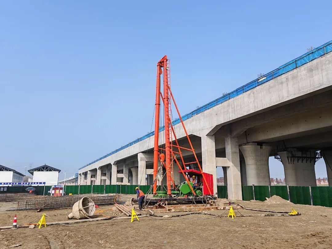 在中铁十五局沪渝蓉高铁黄桥站项目现场,施工水电、临时道路、场地平整以及项目部临时驻地建设已经完成。施工人员正在进行实验性桩基施工。据中铁十五局沪渝蓉高铁黄桥站项目负责人介绍,项目封顶时间是2026年10月底,然后进行装饰装修工程,预计2027年3月底全部结束。