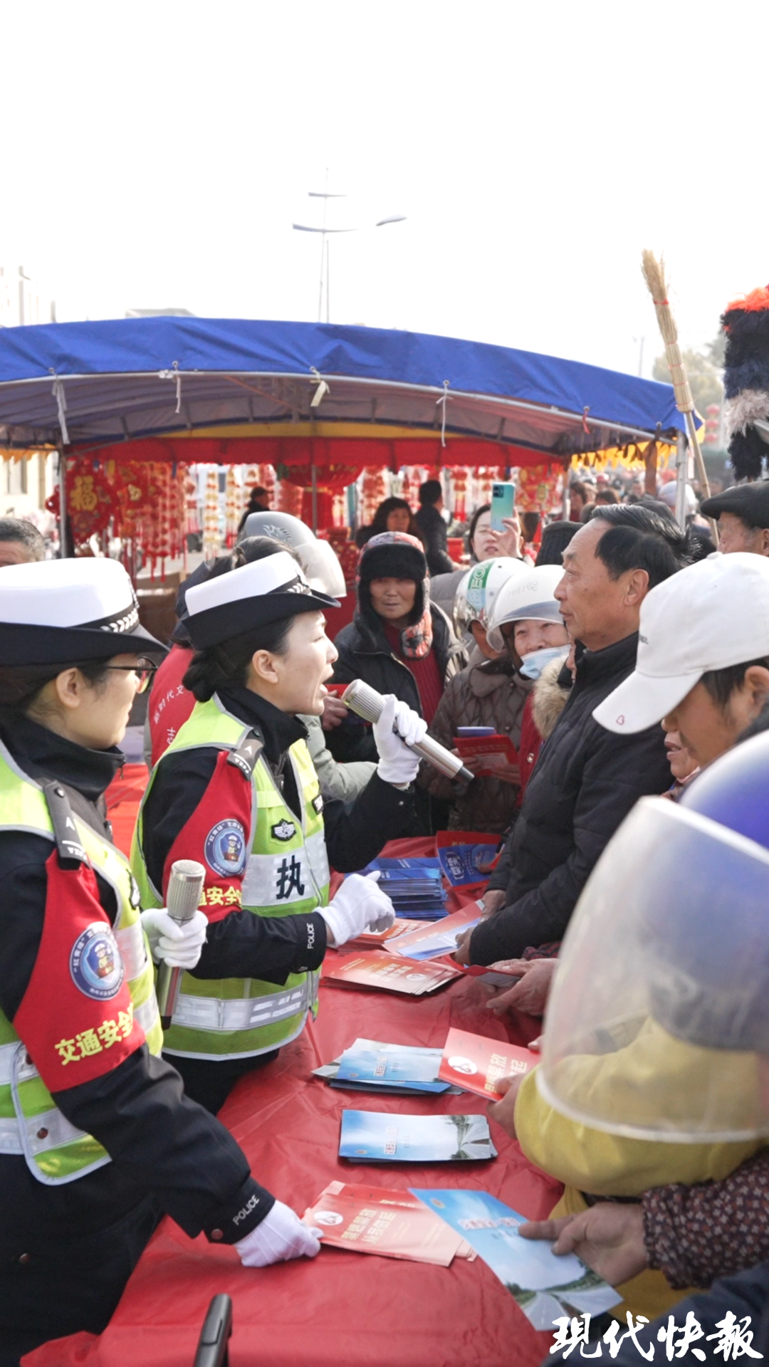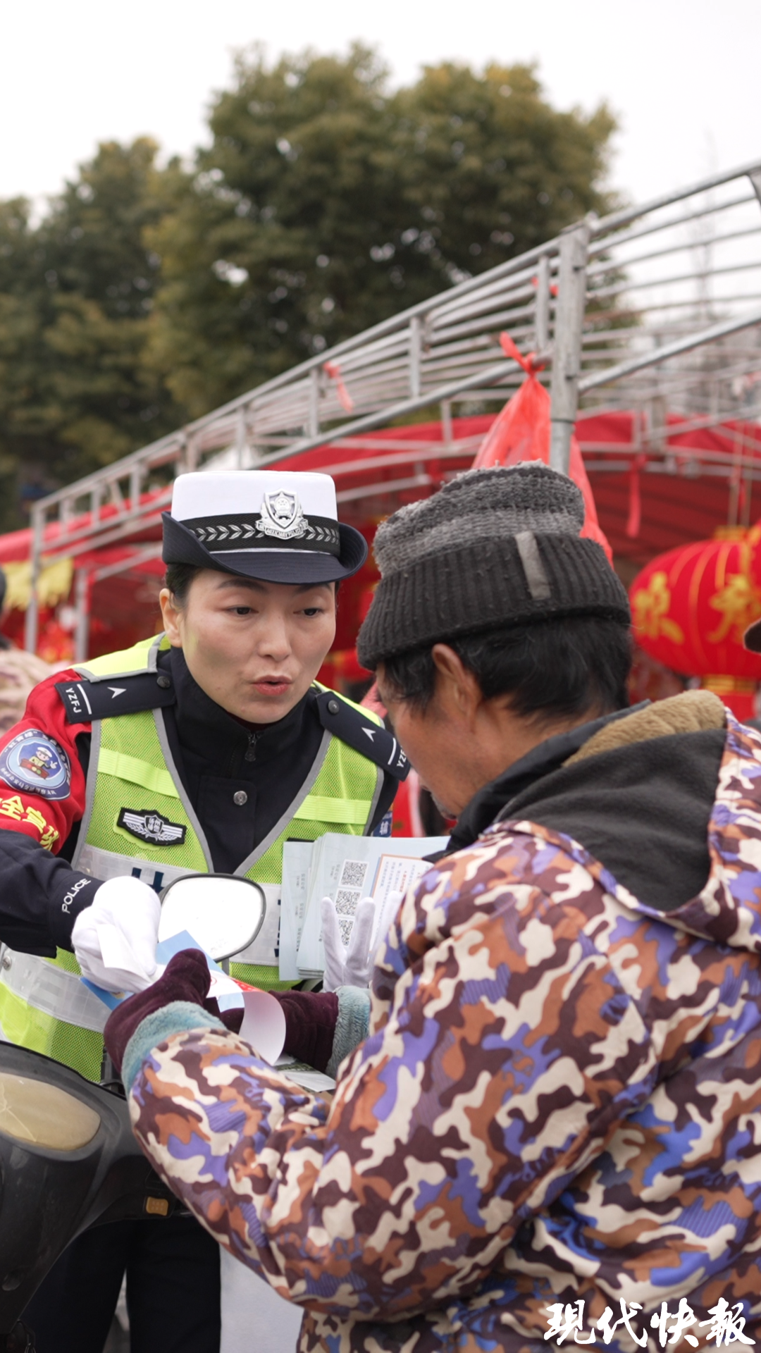 熙攘的人流中,交警宣讲团兵分三路、各显其能:一路专注为老年驾驶人、三轮车车主粘贴反光贴,手把手讲解使用注意事项;一路手持快板,即兴表演自编自导的交通安全“三句半”,竹板一响,乡音入心;还有一路联合市场管理员,耐心劝导占道经营的摊贩,规范车辆停放秩序,让集市既热闹又有序。