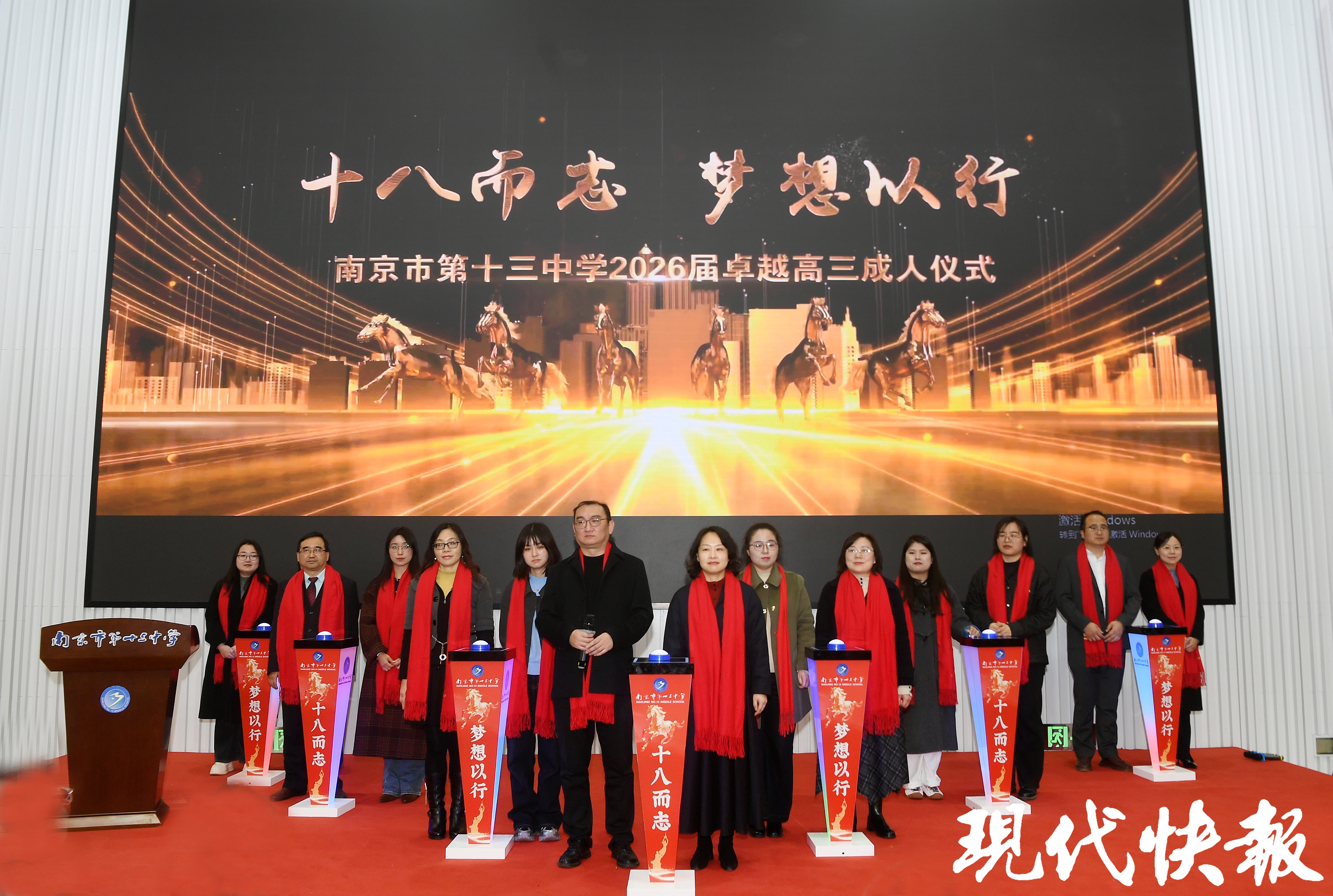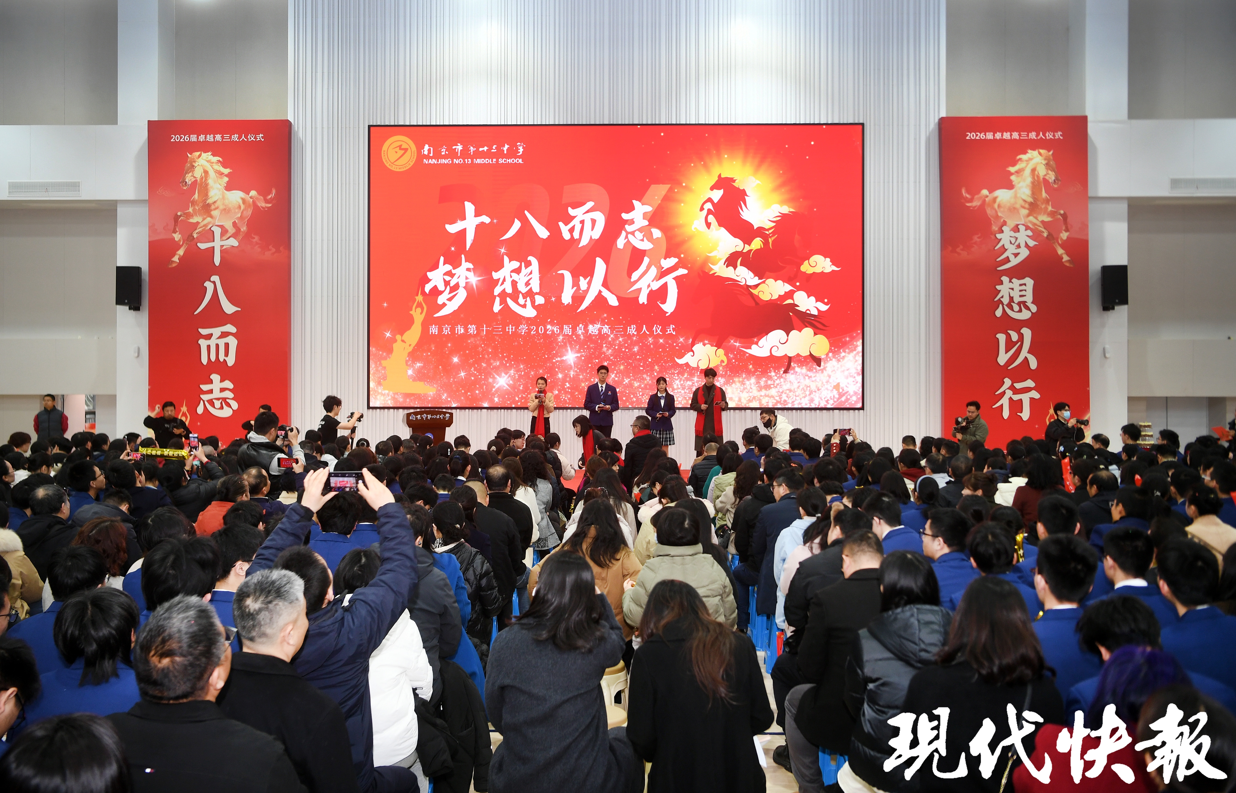 十八而志,梦想以行!2月27日、28日,在2026年高考倒计时100天之际,南京市第十三中学分别为红山新城校区和台城校区的高三学子们举行爱意满满的十八岁成人仪式。在老师和父母的陪伴下,学子们对着生日蛋糕许下心愿,带着祝福向梦想出发。