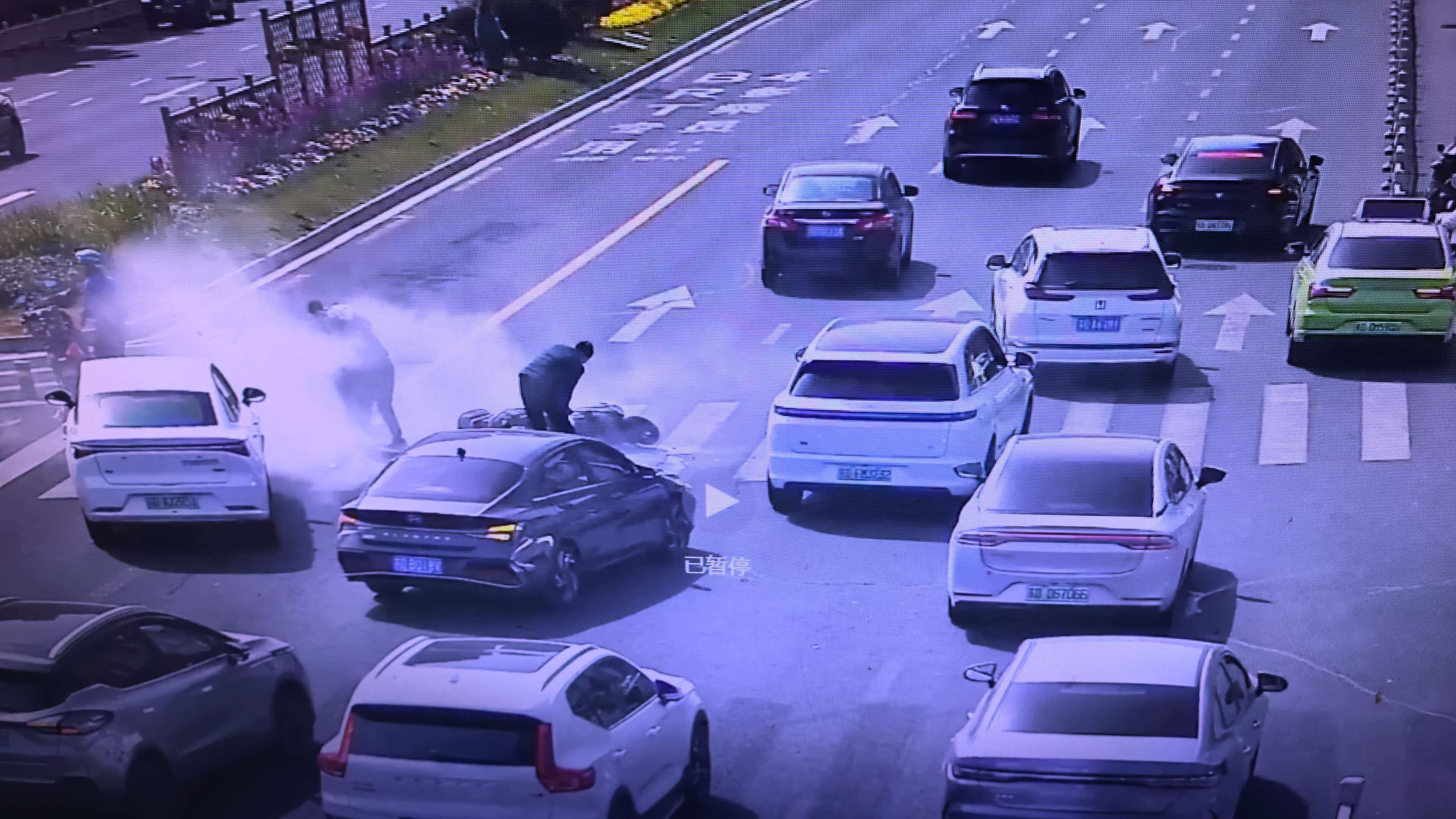 2月23日(农历正月初七)中午,党员雷锋车队队员黄建华接送血透病人返程中,在通江路与巢湖路路口偶遇车祸。小型汽车与电动自行车相撞后,电动自行车冒烟起火,危急时刻,他立即靠边停车,不顾危险手持车载灭火器扑灭火焰,随后报警并保护现场,待情况稳定后默默离去。