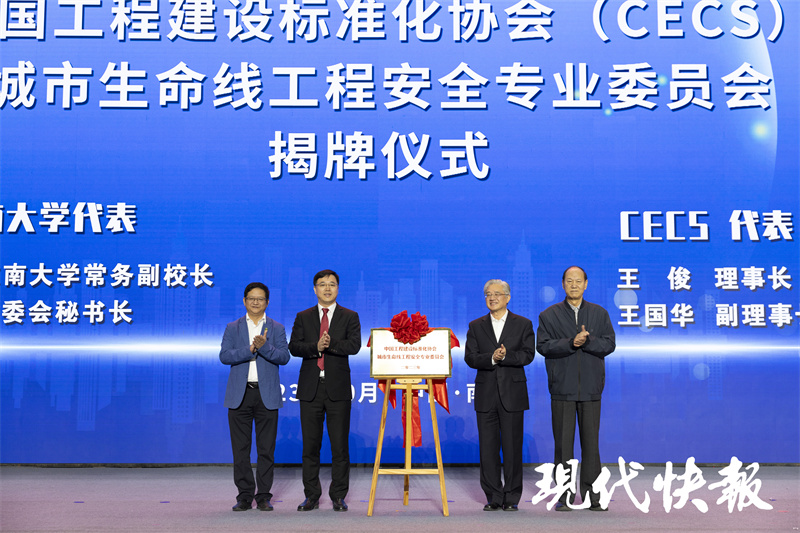 东南大学党委常委、常务副校长吴刚代表东南大学与合作单位共同举行了中国工程建设标准化协会城市生命线工程安全专业委员会揭牌仪式、与中国建筑股份有限公司框架合作协议的文本交换仪式、与中兴通讯股份有限公司以及移动网络和移动多媒体技术国家重点实验室合作协议的文本交换仪式、《Urban Lifeline》首刊发布揭牌仪式。
