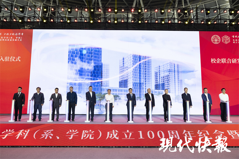 为追溯学科历史,锻造学科情怀,土木工程学科倾力打造了学科百年史馆。建筑学院齐康院士发来祝福视频。东南大学土建交材学科的程泰宁、黄卫、缪昌文、王建国、段进、张喜刚、刘加平、吴智深、王炜、李启明10位两院院士、发达国家院士、国家教学名师和全国宝钢优秀教师特等奖获得者共同触动大屏,正式开启学科百年史馆。