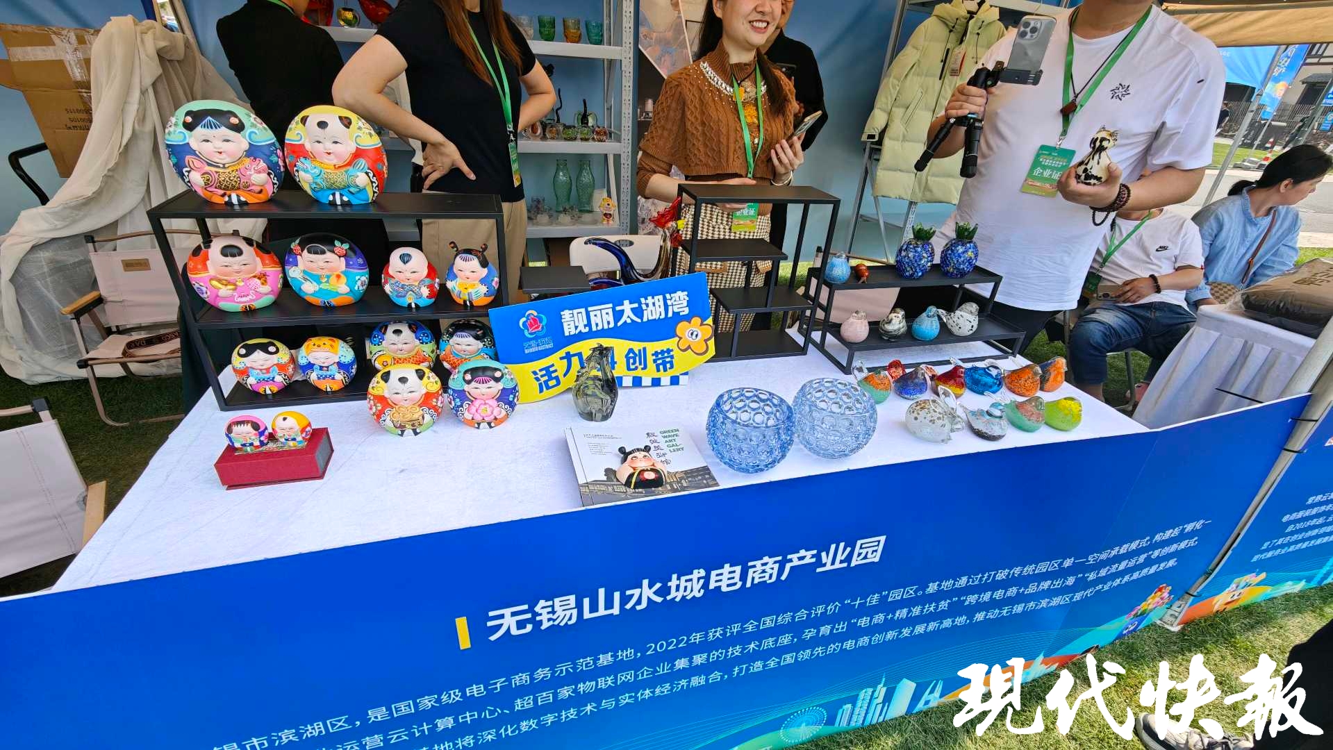 “有没有想要这个兔子的朋友?”在无锡绿波美术馆的摊位上,工作人员正拿着一只兔子形的琉璃制品,在直播间内销售。“我们今天带来产品价值在7万元左右,这才直播了一个多小时,就快卖完了。”葛馆长告诉记者,今天的商品主要分为非遗泥人和琉璃制品,泥人更受欢迎一点,已经卖空了,相比于平时自己在直播间销售要快很多,好多网友通过这次活动来到了他们的直播间。