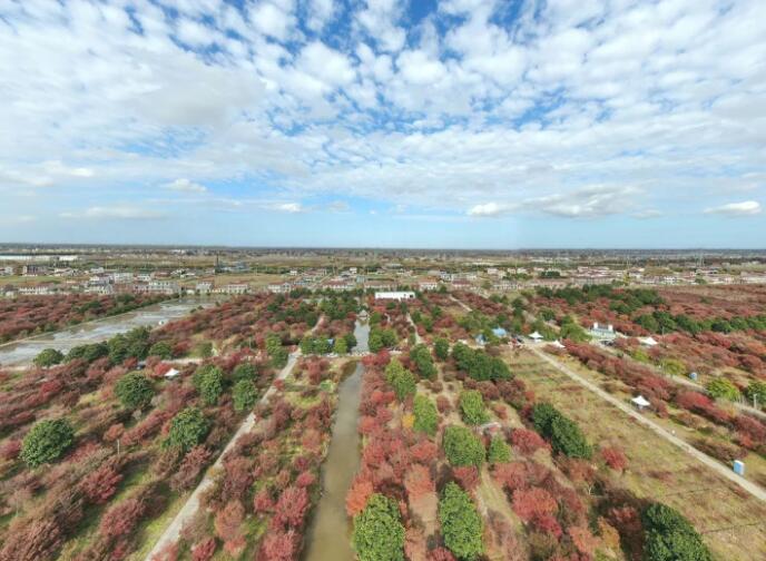 上月底,第一届中国启东槭彩艺术节在奥林鸡爪槭苗木基地举行。近4000亩鸡爪槭林,染红近海、王鲍、海复、南阳、汇龙等镇。全国离退休干部先进个人、“中国好人”、启东奥林苗木园艺场董事长郭中良61岁开始种树创业,年近80还整天在林子里转悠。
