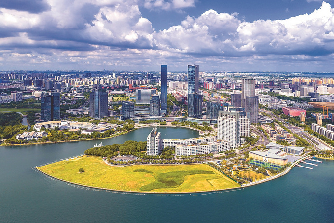 图为7月9日,中国(江苏)自由贸易试验区苏州片区风景美如画。 张锋 摄 (视觉江苏网供图)