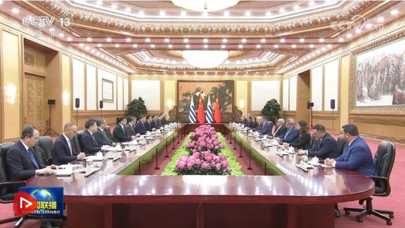 习近平指出,当今世界正处于百年未有之大变局,国际形势变乱交织,单边霸凌愈演愈烈,中方支持乌拉圭接任“77国集团和中国”轮值主席国,愿与乌方加强全球南方团结协作,共同推进平等有序的世界多极化、普惠包容的经济全球化,携手并进、共谋发展,为构建人类命运共同体作出更大贡献。中方始终重视中拉关系,支持拉美和加勒比国家维护自身主权、安全、发展利益,支持乌拉圭接任拉美和加勒比国家共同体以及南方共同市场轮值主席国,愿同乌方和地区国家推动共建中拉命运共同体走深走实。