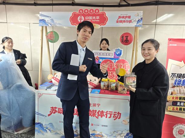 2026年2月5日,太平人寿江苏分公司联合南京中支积极参与现代快报“苏味中国·过大年”全媒体行动,以爱心助农、金融安全宣传为主要内容,在繁华商圈搭建特色宣传摊位,用专业守护市民“钱袋子”,彰显太平人寿“国家所需、太平所向”的责任担当。