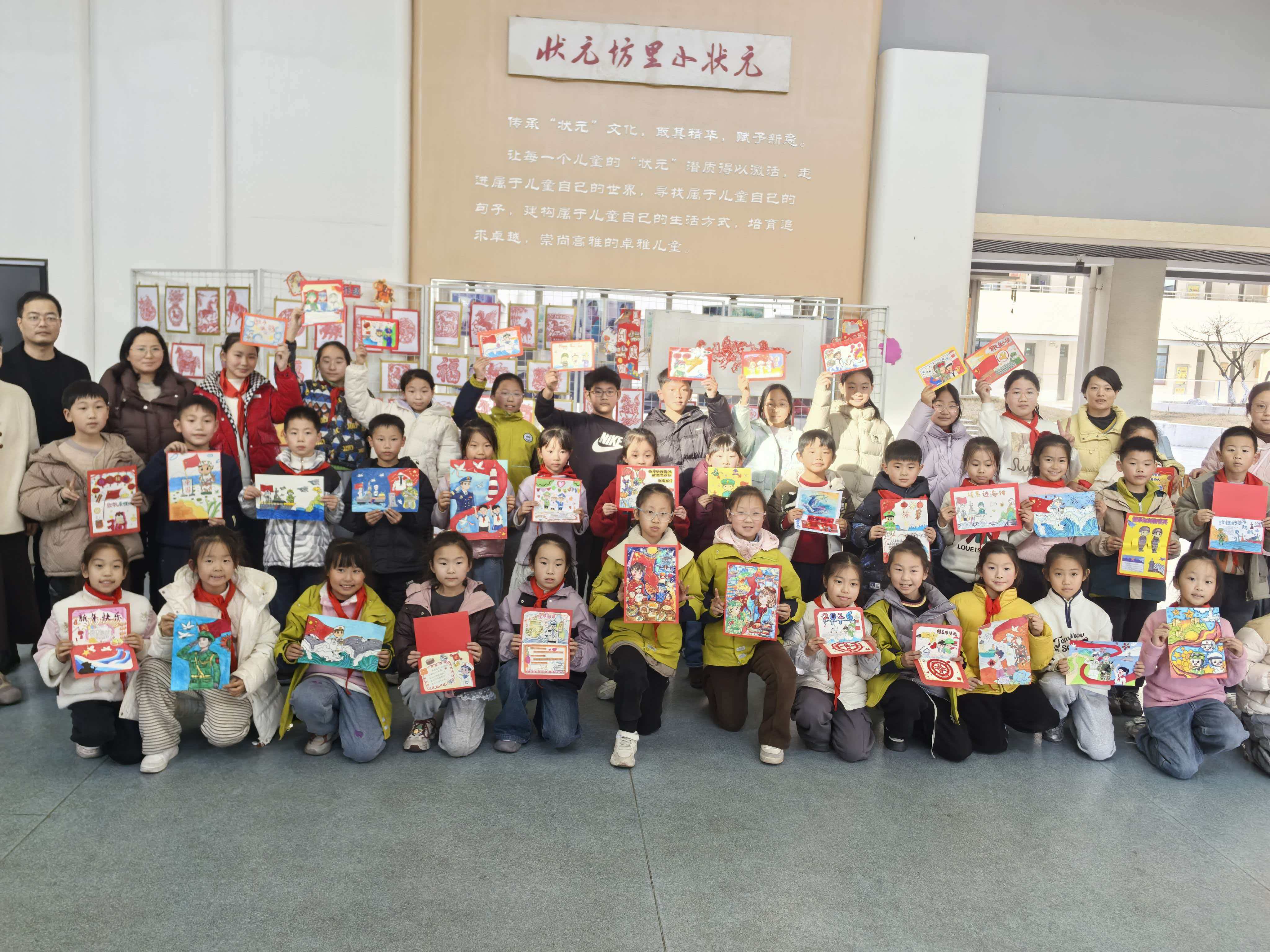 《一人参军 全家光荣》再现欢送新兵的锣鼓喧天;《为祖国站岗》定格边防战士迎风挺立的飒爽英姿……六合区双拥办和冶山街道双拥联络员积极协调非遗代表性传承人丁广华、王金凤,创作了10套共50幅六合非遗农民画,也启程奔赴祖国边海防一线。质朴浓烈的色彩、形象生动的造型、浓郁醇厚的乡土气息,让这一被誉为“原生态艺术”的国家级非遗,成为讲好双拥故事、弘扬家国情怀的独特载体。南京市后标营小学学生、10岁小军娃张成王子也加入这场温情接力——他利用课余时间,临摹书写马年双拥春联30副,笔锋虽稚,心意铿锵:“同筑强军梦,共绘中国红”。作为全国国防教育示范学校,后标营小学将国防教育融入日常:每周三设“国防教育日”,还与海军南京舰交流互动,选派小学生代表参加“舰艇开放日”……全校近六分之一学生为军人子女,“爱国拥军不是口号,而是生长在校园里的空气与土壤。”该校党支部书记沈璐说。