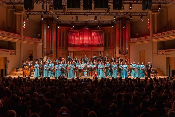 巡演的首场演出在比利时布鲁塞尔艺术中心举行,当晚,音乐厅内2000余席位座无虚席,红灯笼、中国结装点着演出现场,浓郁的春节氛围扑面而来。无锡民族乐团精心打造的“国乐盛宴”,汇聚了《春节序曲》《梦华太湖》《云想花想》《春晓》等民乐经典曲目与江南特色作品,让现场观众沉醉其中。演出尾声,乐团与当地民族乐器按弦提琴合奏《赛马》,熟悉的旋律让在场的华侨华人热泪盈眶,也让不少欧洲观众情不自禁地跟着欢快的节奏鼓掌、打拍。