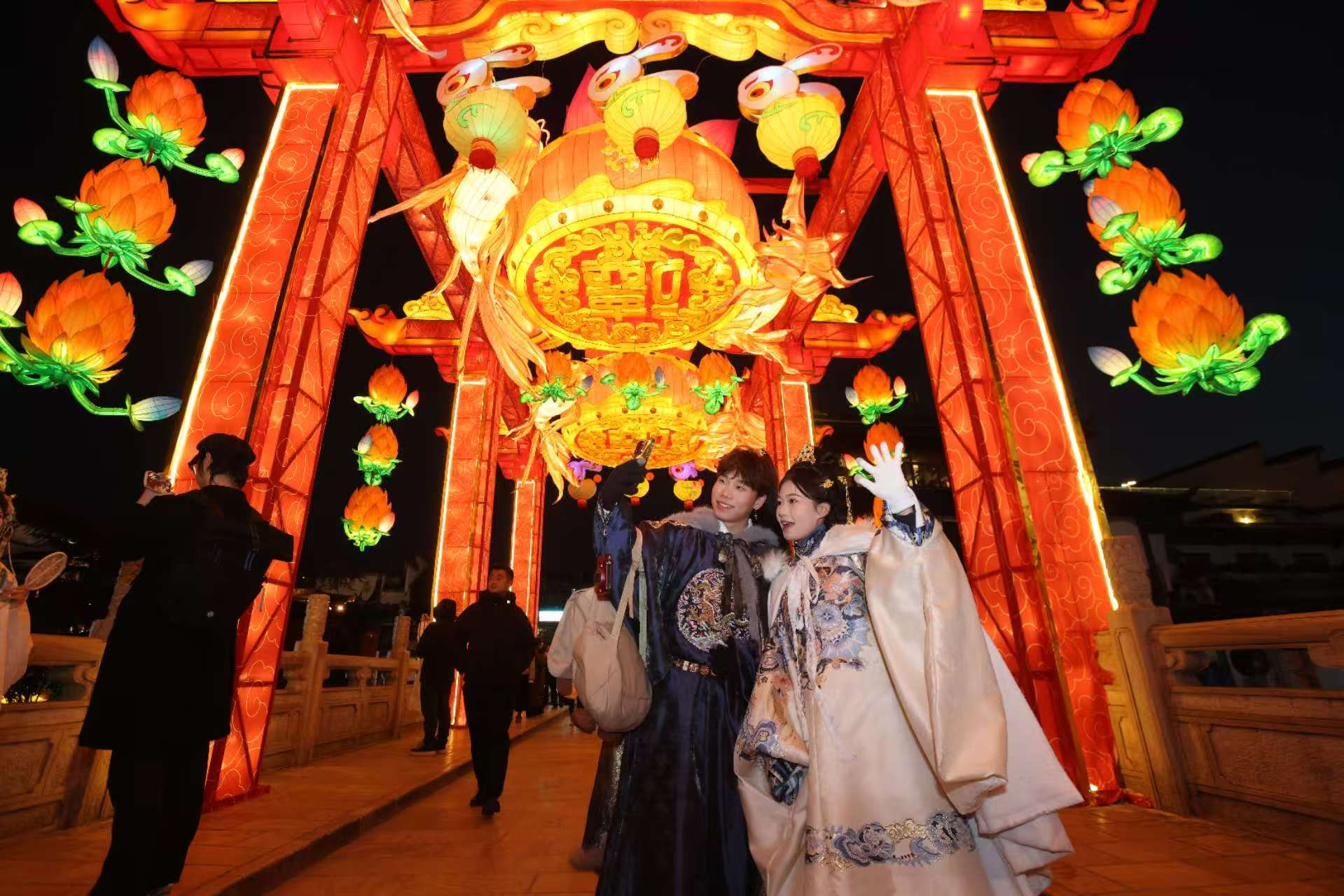 这个春节假期,南京总计捧出600余道形式新颖、内涵丰富的特色“文旅大餐”,涵盖“马”上闹花灯、“马”上逛民俗、“马”上赏梅花、“马”上看演出、“马”上观展览、“马”上拍网红等六大“菜系”,荟萃浓郁金陵年味。众多一线文旅从业者、志愿者放弃与家人团圆,坚守岗位,为游客精心烹制“文旅大餐”,营造欢乐祥和、平安有序的旅游环境。