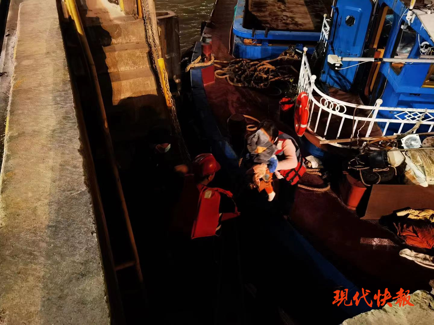现代快报讯(通讯员 杨东 李健新)11月4日21时许,长江航运公安局苏州分局太仓派出所民警在太仓港进行入沪船舶安检时,一名船员急匆匆的跑来向民警求助,船员表示自己船上年仅1岁的幼儿因咽部发炎导致高烧,情况危险,急需就医,但由于港口地处偏远打不到车,急需民警帮助。