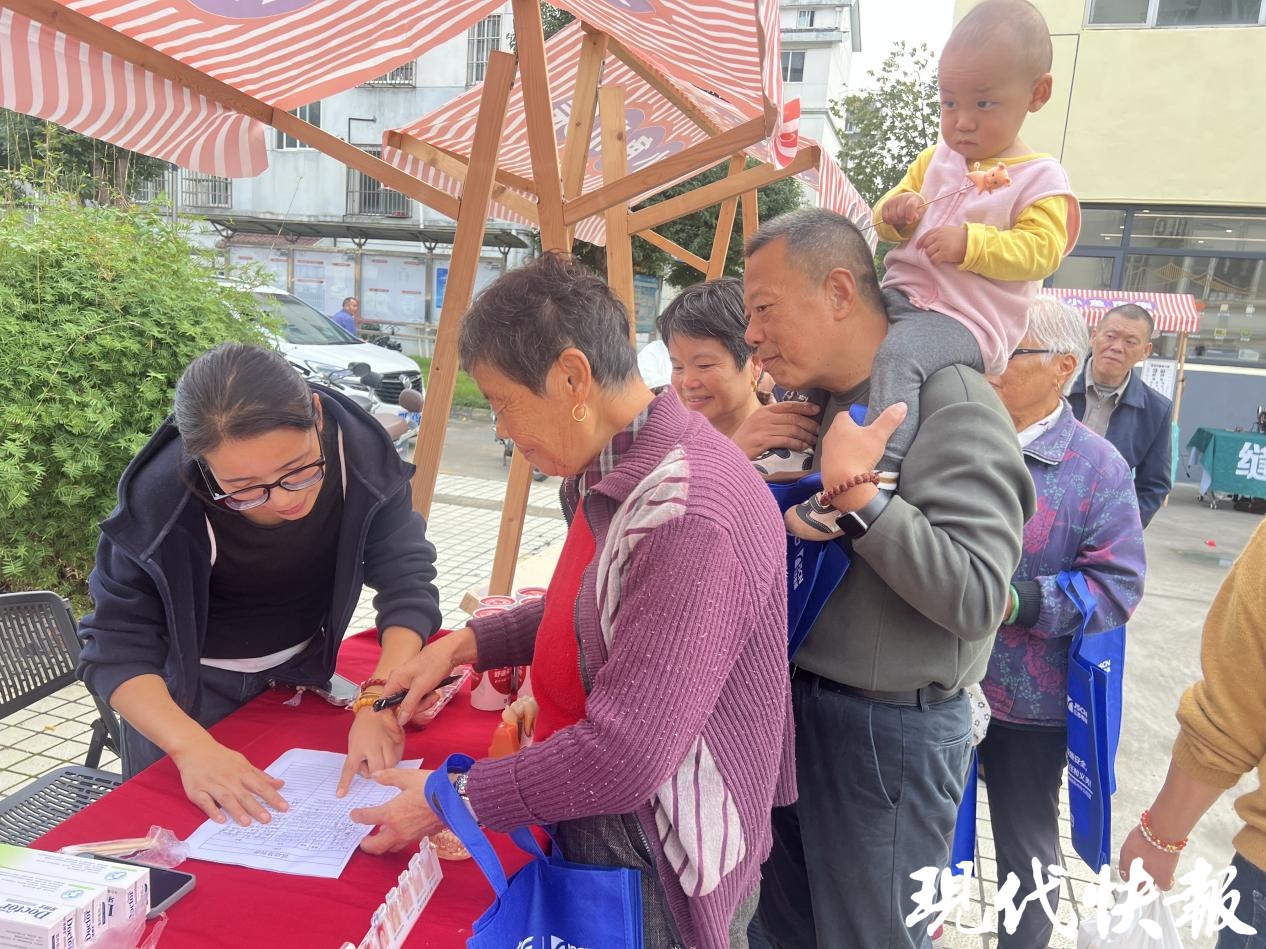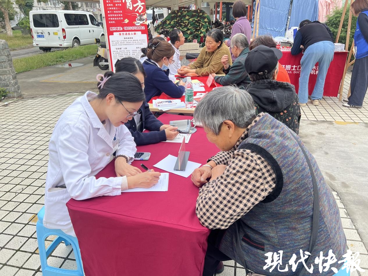 除了“老行当”,集市服务设计也充分照顾到“一老一小”群体。健康咨询区内,医护人员为居民提供血压监测、中医脉诊、眼科、牙科检查等一站式服务,深受中老年朋友欢迎。“下楼遛个弯就能做检查,太方便了!”刚测完血压的张大爷连连称赞。