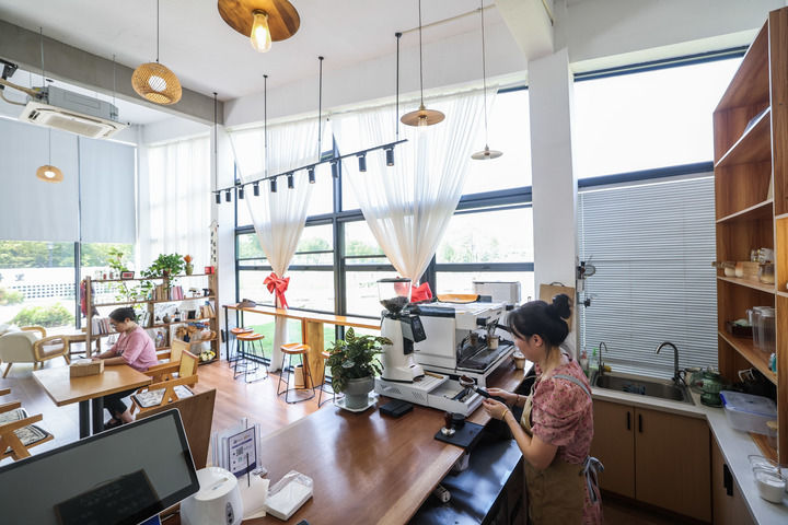 △2025年8月27日在浙江省湖州市长兴县虹星桥镇宋高村稻香伴日营地内拍摄的咖啡屋。这是宋高村做优全域土地整治后的农文旅新尝试,集餐饮、旅游、农业和文化于一体。新华社记者 徐昱 摄