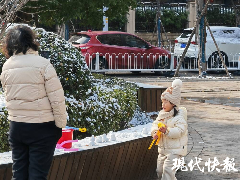 现代快报讯(记者 徐红艳/文 吉星/摄)初雪不期而至,12月15日夜到16日凌晨,南京大部分地区遭遇雨夹雪和雪,全市积雪深度1~2厘米。