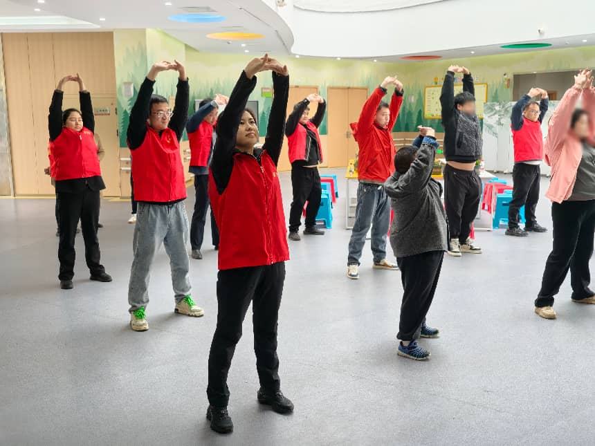 为了让特殊学生能够更好地锻炼身体、放松心情,党员先锋队还精心组织了八段锦健身活动。党员们耐心地向学生讲解八段锦的动作要领,并亲自示范,手把手地纠正他们的动作。在悠扬的音乐声中,大家一同舒展身体、调整呼吸,感受着传统健身功法的独特魅力。八段锦健身活动不仅有助于提高学生的身体素质,还能培养他们的专注力和意志力,让他们在运动中收获健康与快乐。