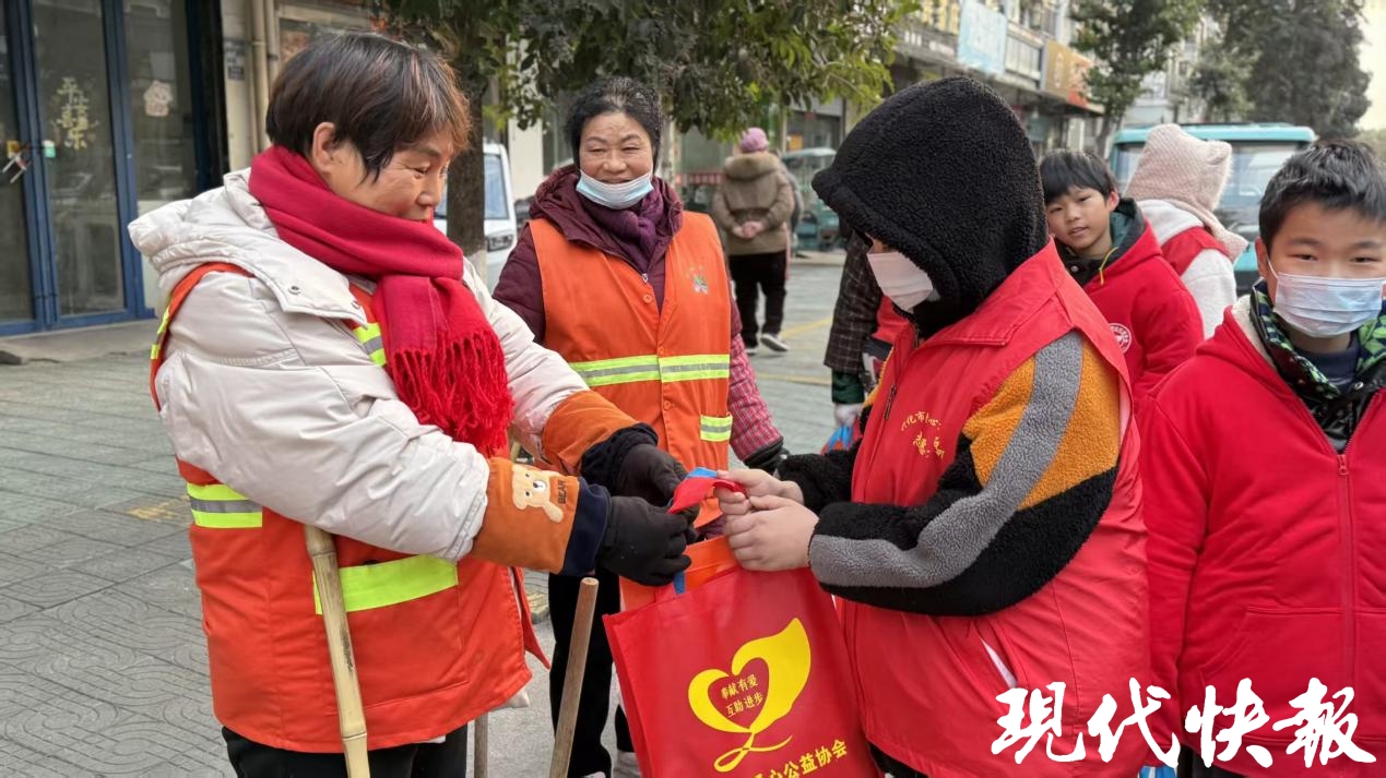 现代快报讯(通讯员 冯兆宽 兴宣 记者 刘媛)冬日清晨的兴化街头,寒意尚未褪去,一抹抹鲜艳的“志愿红”正与城市里最动人的“环卫橙”温情相遇。12月27日周六清晨6:40起,市区长安路、牌楼路、马桥路、九顷路、板桥路、金东门等路段陆续出现暖心场景,10多名身着红马甲的孩子与家长携手,开展“红马甲伴童心 共敬‘橙光’”暖冬慰问活动,为坚守在一线的100多名环卫工人送上冬日关怀与真挚敬意。