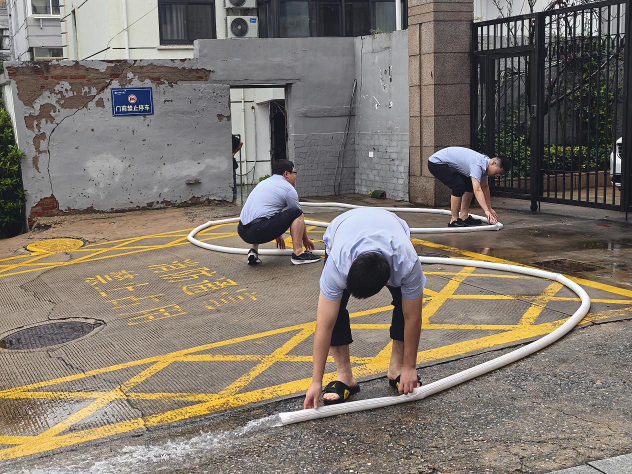 “得先把下水道口的杂物清干净,积水才能排得快!”在市分行本部周边老旧小区,几名青年员工正俯身用工具扒拉下水道口的落叶与淤泥,污水溅湿了衣裤也未停歇。清理完堵塞点,他们又接力搬运沙袋,在小区入口筑起临时挡水堤,还找来水泵架设排水,一系列动作有条不紊。“小区老人多,积水不及时排,出行太危险”一名青年志愿者擦着额头的汗水说。