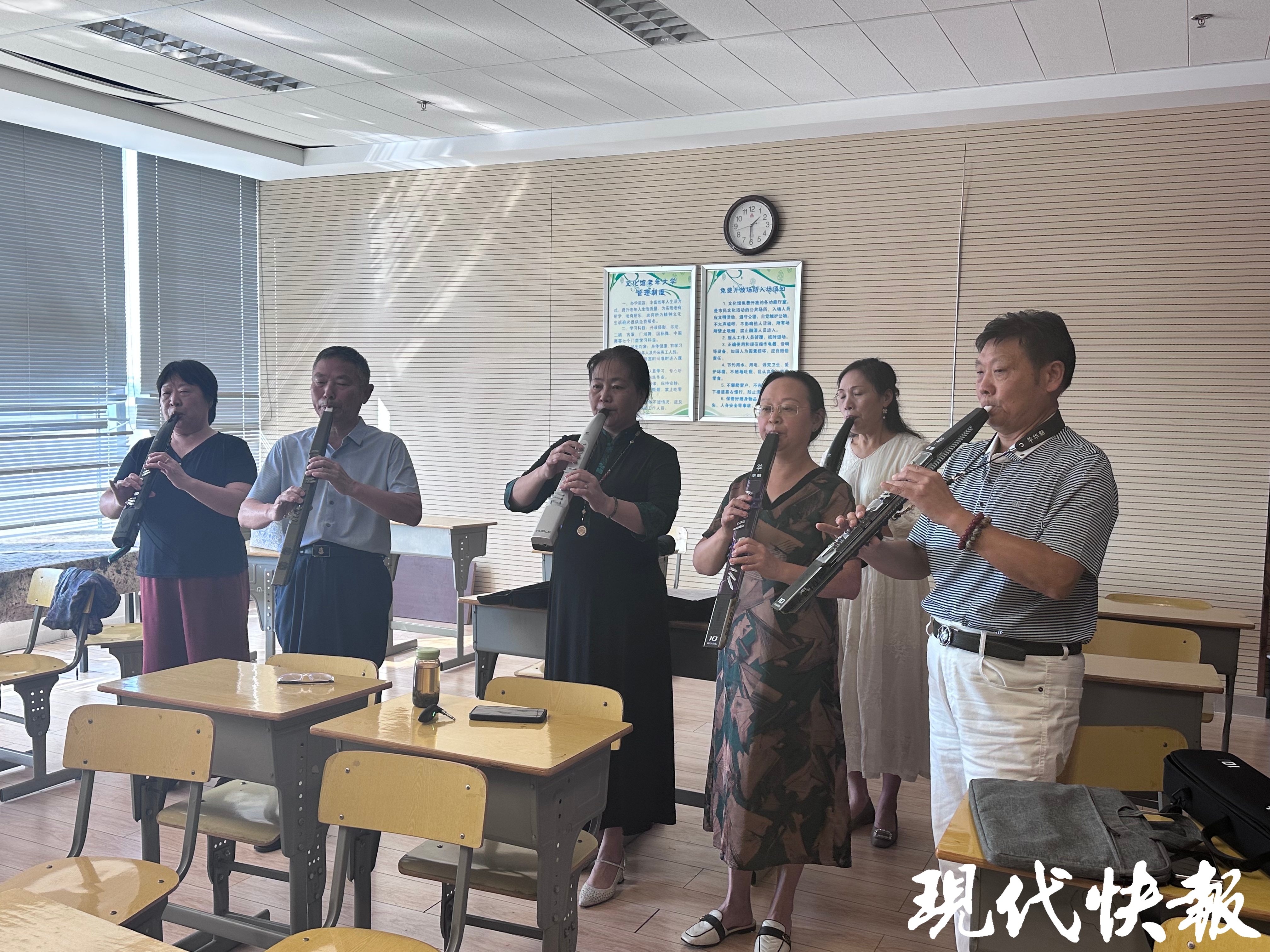 文化馆里像王惠芬这样的人还有不少。68岁的居静泉守了大半辈子照相馆,镜头里装着别人的故事,心里却藏着个没说出口的音乐梦。起初他想学二胡,可摸了摸琴弦,觉得太难,后来试着拿起了电吹管,“刚开始连五线谱都认不全,老师就手把手教我找音准,一遍不行就再来一遍。”如今半年过去,居静泉已经能完整吹完《祝福祖国》,闲下来的时候吹上一段,心情都变好了,“没想到老年生活能这么阳光、快乐。”