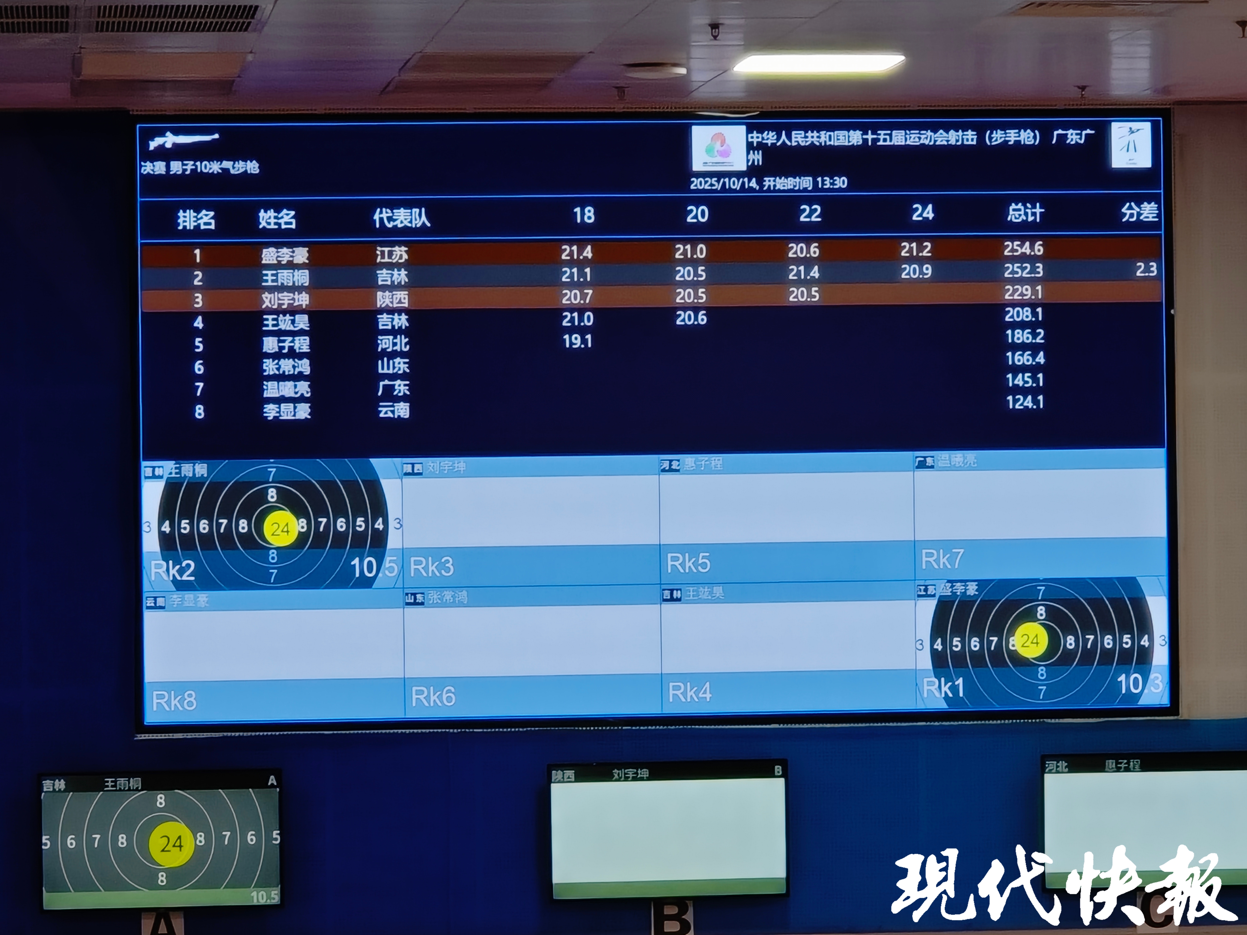 现代快报讯(记者 王卫)10月14日下午,第十五届全运会男子10米气步枪个人决赛在广东省黄村体育训练中心射击馆举行,江苏运动员盛李豪获得男子10米气步枪个人金牌,这是江苏代表团参加本届全运会竞技比赛获得的第三枚金牌。