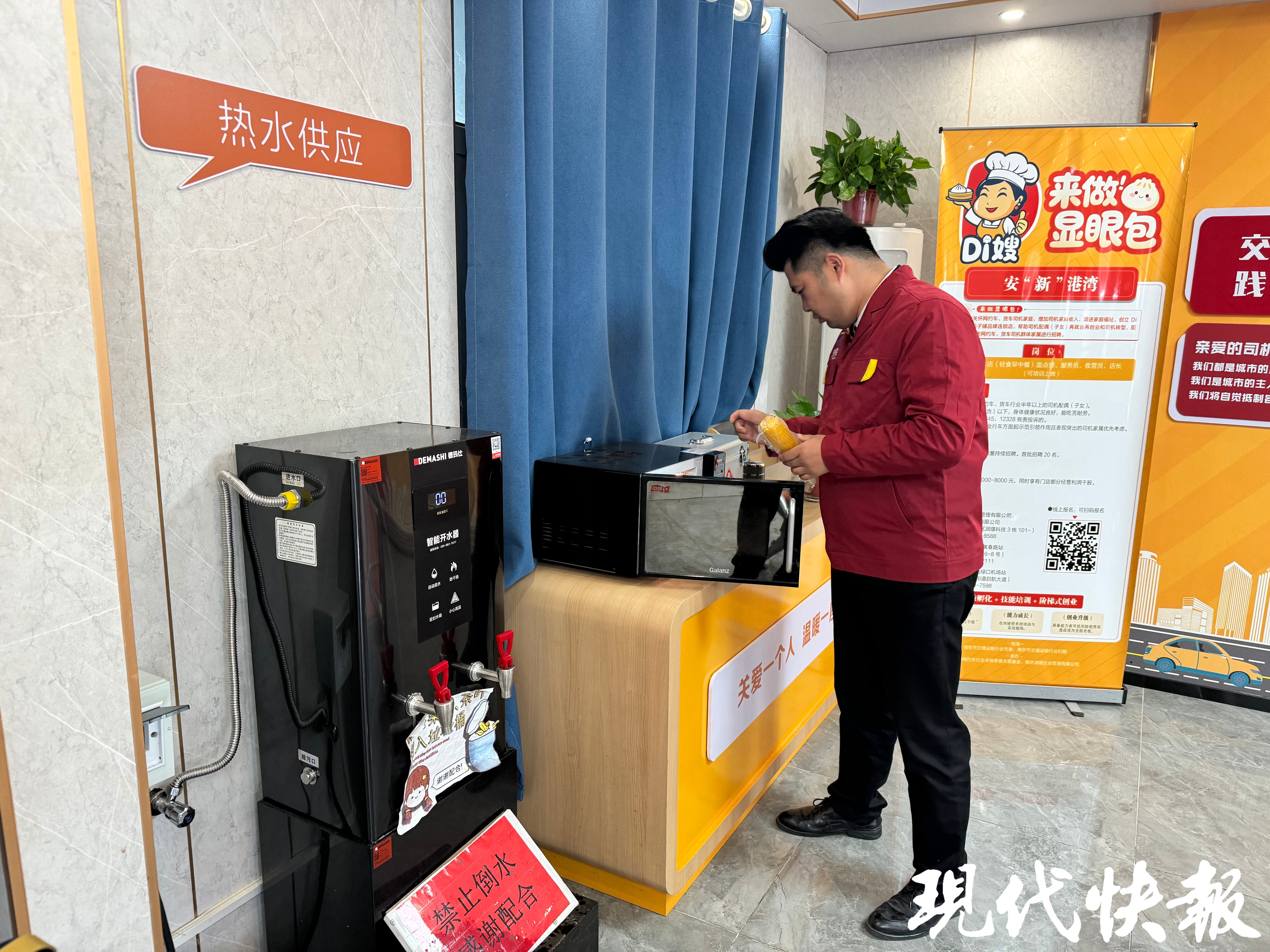 这处由“金梧桐”企业——南京众滴汽车服务有限公司(以下简称“众滴”)打造的线下服务中心,今年7月正式运营。公司副总经理梁文介绍,该服务中心面向全体司机免费开放,提供休息、用水、热饭、充电等便民服务,日均服务司机超200人次。值得一提的是,服务中心融入“宁小蜂驿站”功能,同步提供行业咨询、党建指导及安全宣教等增值服务,让关爱不止于“歇脚”,更延伸到职业发展的方方面面。