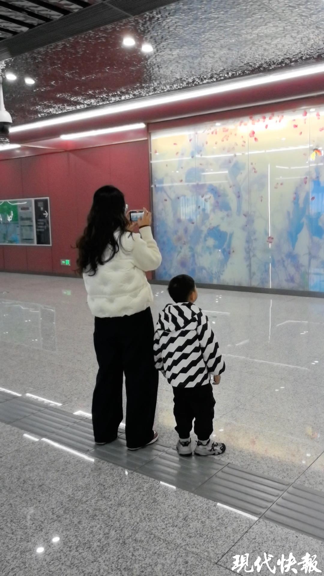 同样,3号线三期也吸引了沿线很多居民来打卡。现代快报记者注意到,有的居民不乘车,也抱着孩子到地铁站参观。可以说,新线开通当天南京地铁就开启“圈粉模式”啦。