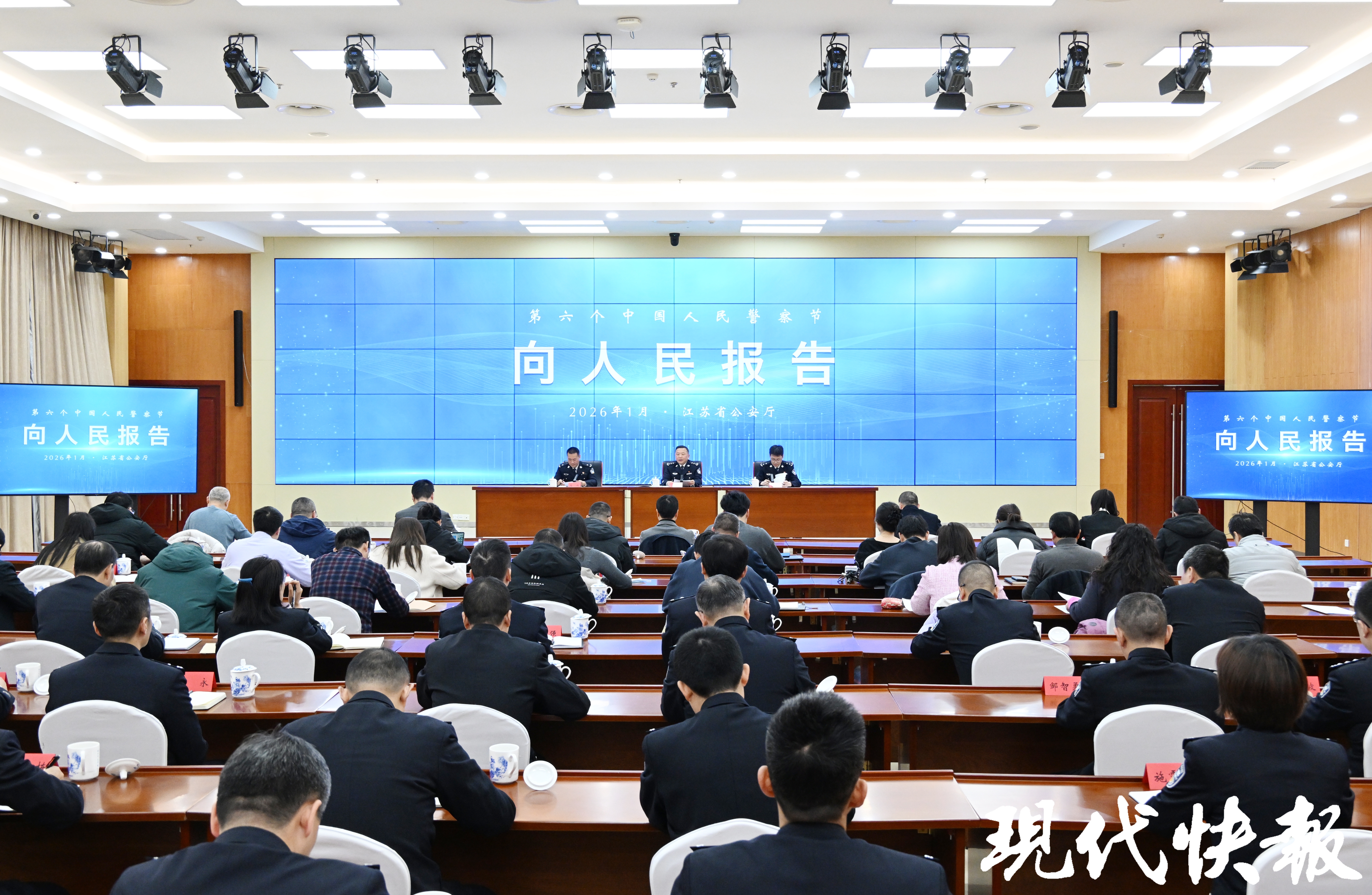 为庆祝第六个中国人民警察节,1月9日,江苏省公安厅举行“向人民报告”新闻发布会,通报2025年全省公安工作和队伍建设情况,发布2025年度全省公安机关“奋进公安工作现代化”十项惠民实事。