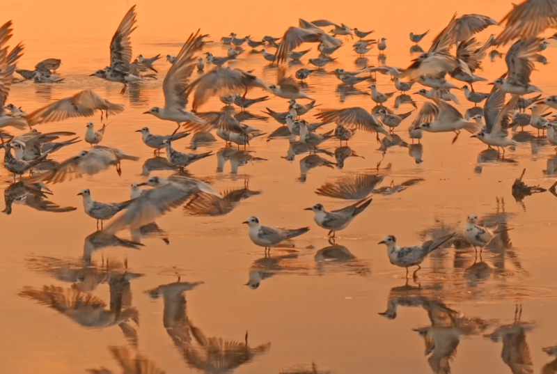 当晨光浸染滩涂,这里已成候鸟天堂。黑嘴鸥掠过水面,黑翅长脚鹬翩跹起舞,白鹭如雪点缀金滩。