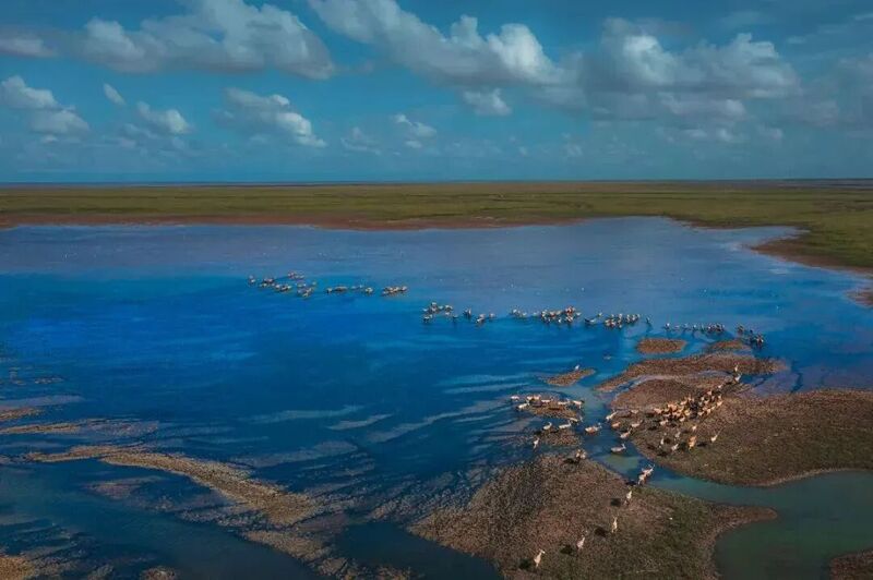 这是世界上面积最大,种群数量最多的野生麋鹿园,成群的麋鹿追逐欢腾,仿佛非洲动物大迁徙,“东方肯尼亚”的既视感扑面而来。
