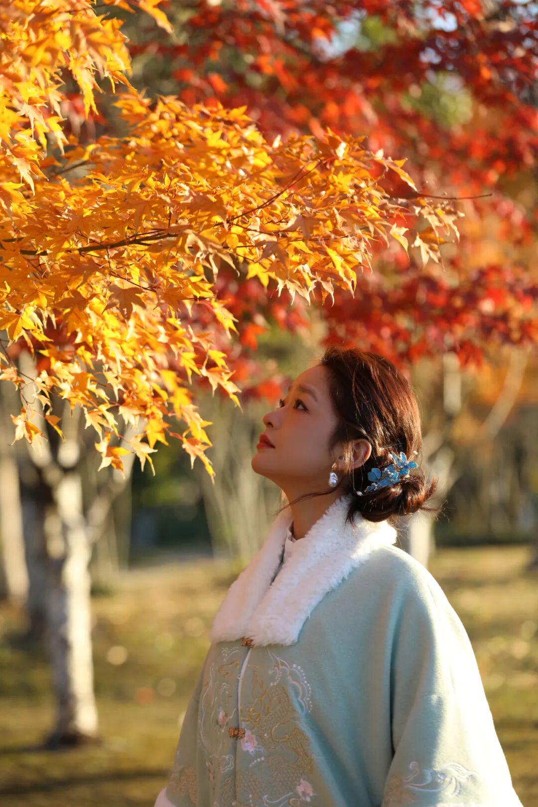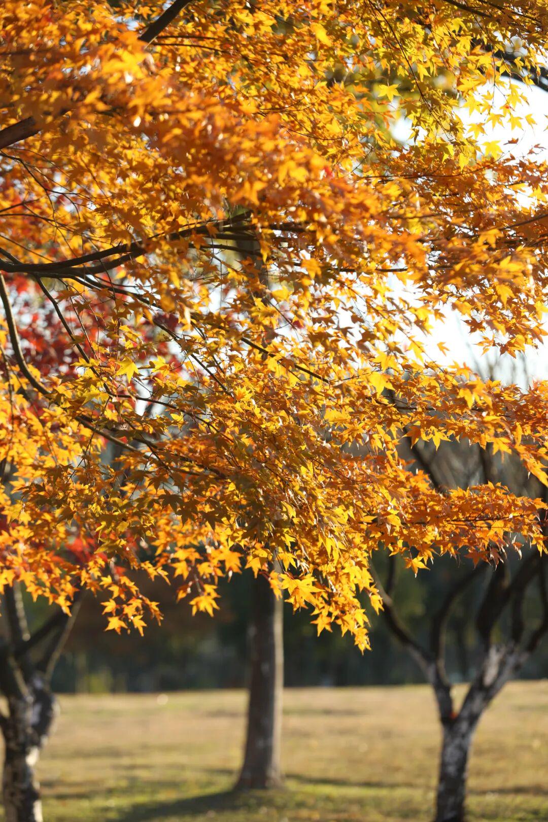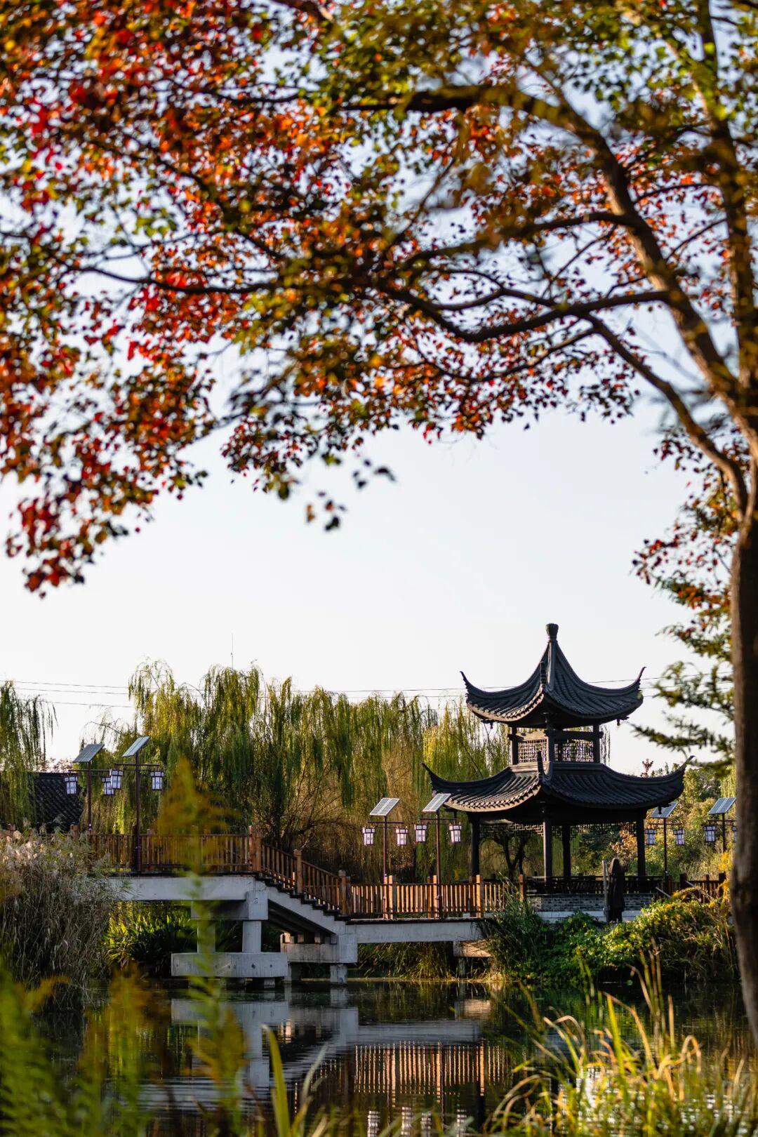 斑驳的塔身、青灰的塔砖,海春轩塔静静矗立,承载着千年岁月沧桑。火红的枫叶环绕塔身,古老的宝塔便多了几分冬日的热情与活力,诗韵与惊艳在此刻完美相融。