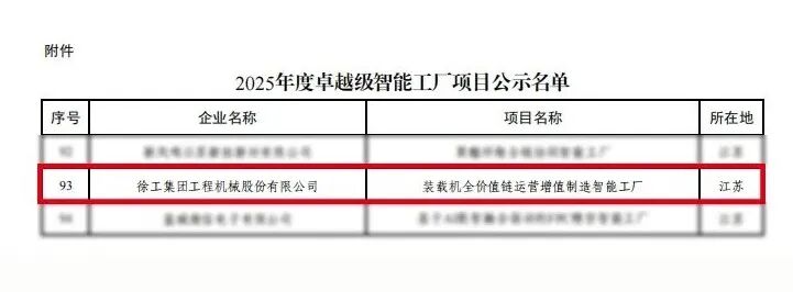 近日,工业和信息化部公示了《关于开展2025年度智能工厂梯度培育行动的通知》,徐工集团工程机械股份有限公司凭借“装载机全价值链运营增值制造智能工厂”成功入选卓越级智能工厂项目名单。