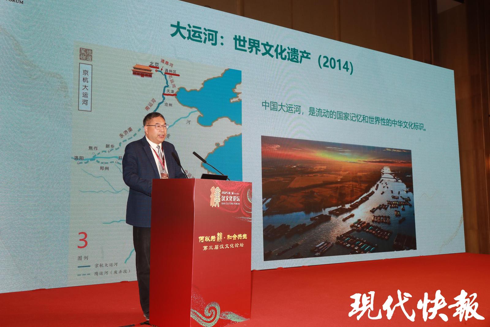 徐州运河史中,留下了不同时代的人文典故,黄运在此交汇,构成了徐州运河文化的典型特征。江苏师范大学地理测绘与城乡规划学院教授、大运河文化带建设研究院徐州分院执行院长沈山,以《黄运交汇对徐州古都景观的塑造》为题发表演讲。