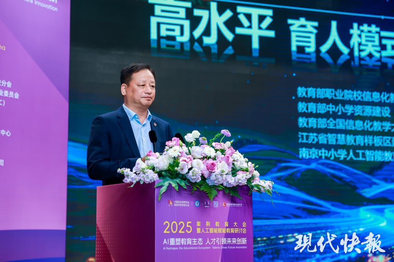 会议尾声,南京市教育局二级巡视员、南京市中小学人工智能教育研究中心执行主任潘东标发表“重置系统,高水平育人模式的时代选择”的总结陈词。他提出,面对教育变革的时代需求,传统育人模式需要进行系统性重置。要以人工智能为技术驱动,重塑教育理念、课程体系、教学方法和评价机制。构建融合AI技术的高水平育人模式,注重培养学生的创新思维、实践能力和全球视野,使教育更好地适应时代发展,为国家培养出更多高素质的创新人才。