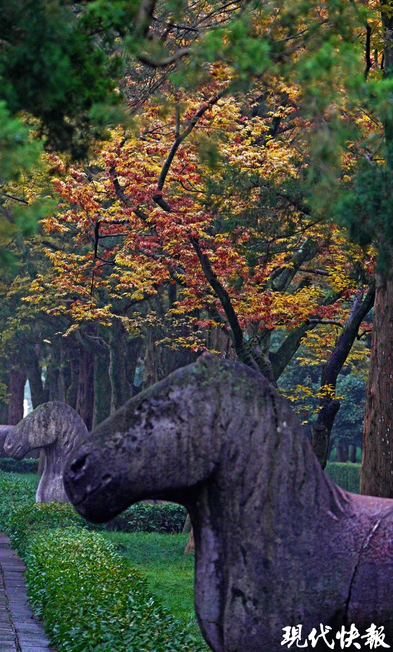 目前,石象路的秋色正处于“渐入佳境”的阶段,趁着秋高气爽,不妨前往石象路走走,与有着六百年历史的石兽共赴一场秋日盛宴。