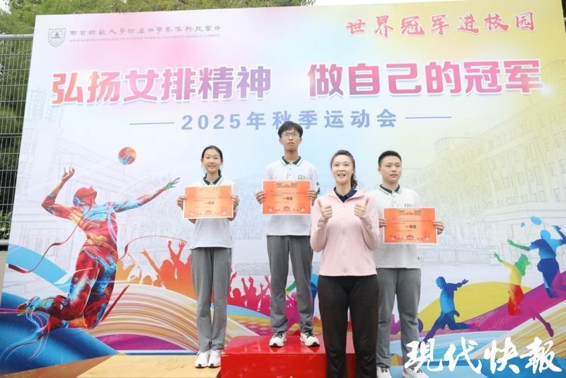 附中科高女排队现任教练正是惠若琪曾经的队友李慧,两人从省队到国家队结下了深厚的队友情,如今她们又都成了教师。惠若琪现场对女排队员的技术动作、战术配合等进行指导,并示范了扣球、拦网等动作。在不久前结束的2025年全国青少年U19女排锦标赛上,由南京师范大学附属中学秦淮科技高中领衔的南京秦科高女排代表江苏省出战以全胜战绩勇夺桂冠、摘得金牌。
