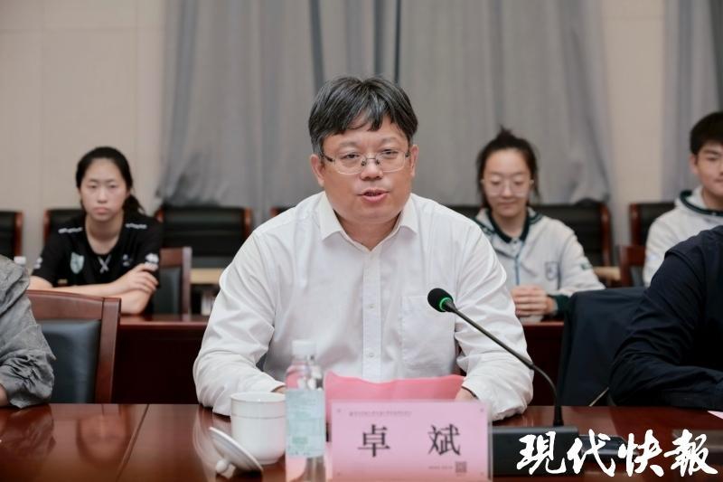 在“共话未来”的交流活动中,附中科高党委书记卓斌介绍了学校近年来的办学成果。附中科高是南京市唯一招收女排特长生的高中校,每年招收6—10名排球特长生。学校的排球俱乐部向全校学生开放,让排球文化进入整个校园。学校推进“科技+体育”的大科技教育理念,将智能穿戴设备VR、AR技术引入到排球教学当中,用数据分析来定制个性化的训练方案。近年来,附中科高女排不仅获得全国冠军,还有球员助力中国获得世界冠军。多名有排球、游泳特长的附中科高学子,进入北大、清华等一流高校深造。