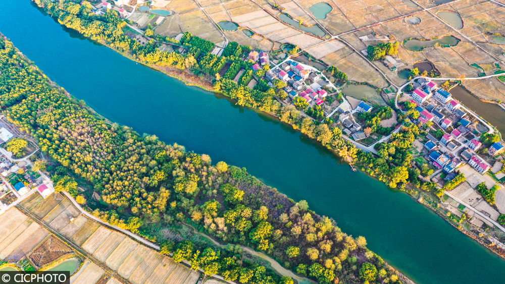 ↑2022年11月12日在江西省吉安市吉水县水南镇泷江拍摄的景色。(无人机拍摄)CICPHOTO/廖敏 摄