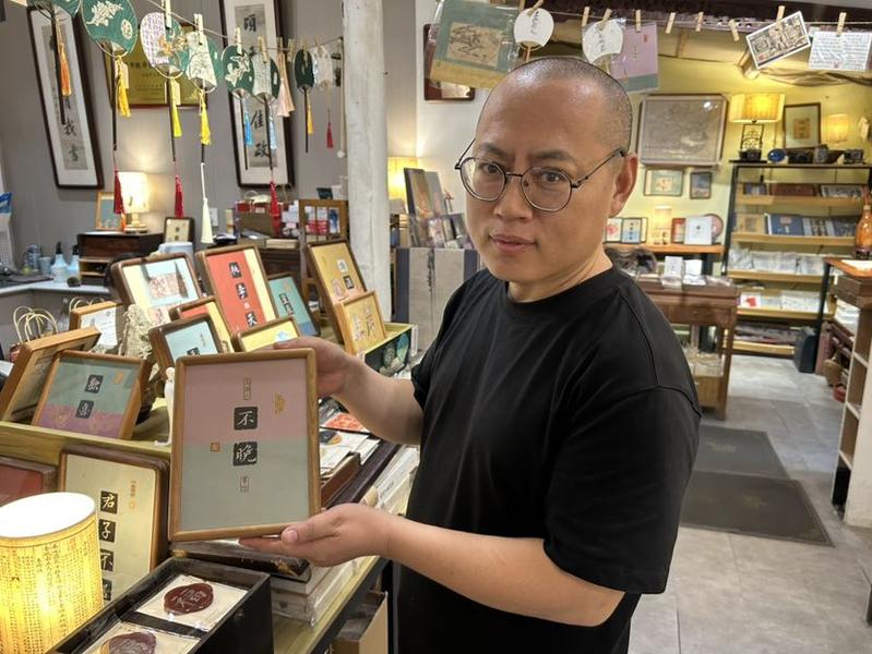 在诸多商户中,边城书店无疑是一颗璀璨的明珠。原创的扬州元素冰箱贴、雅致的书签、充满设计感的布包与摆台,因其美好的寓意和独特的地方文化特色,成为游客争相购买的热门商品。作为其灵魂业务的古籍修复,更散发着磁石般的吸引力。来自四川成都的吴先生,专程携一本残破的古籍而来,请店主王军施以妙手,并准备在扬州小住,静候修复完成。“古籍修复的订单已经排到了明年。”王军言语间洋溢着欣慰,“国庆假期,我们店的消费单数上涨了15%,这次‘非遗之夜’活动,为我们招揽了爆棚的人气,日均接待顾客能达到数千人次。”